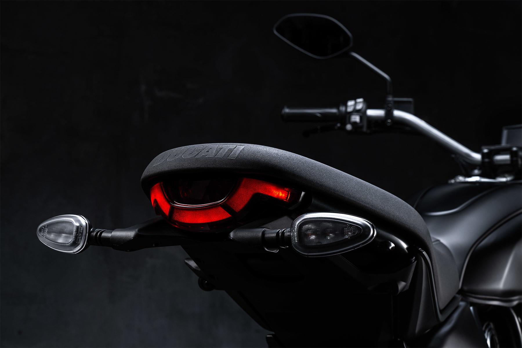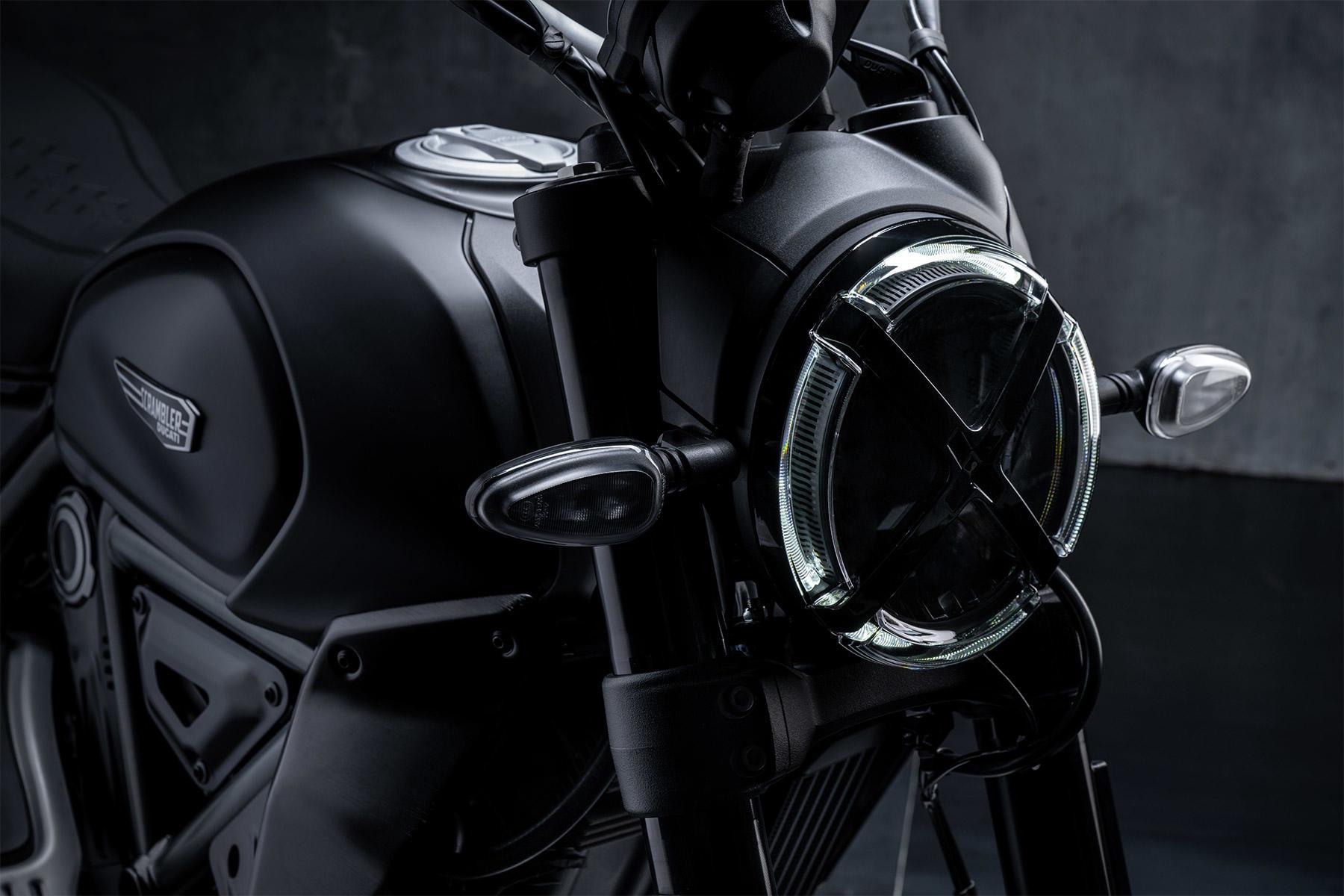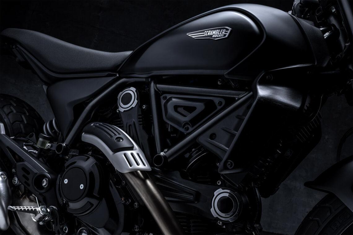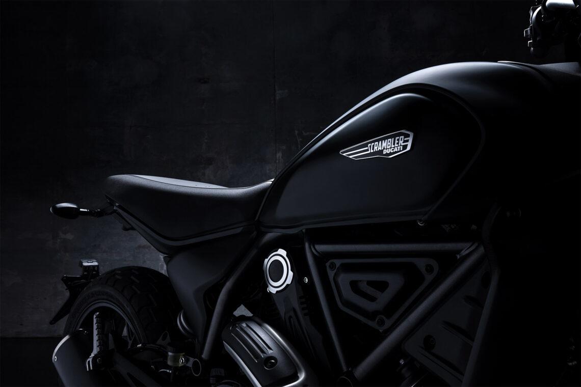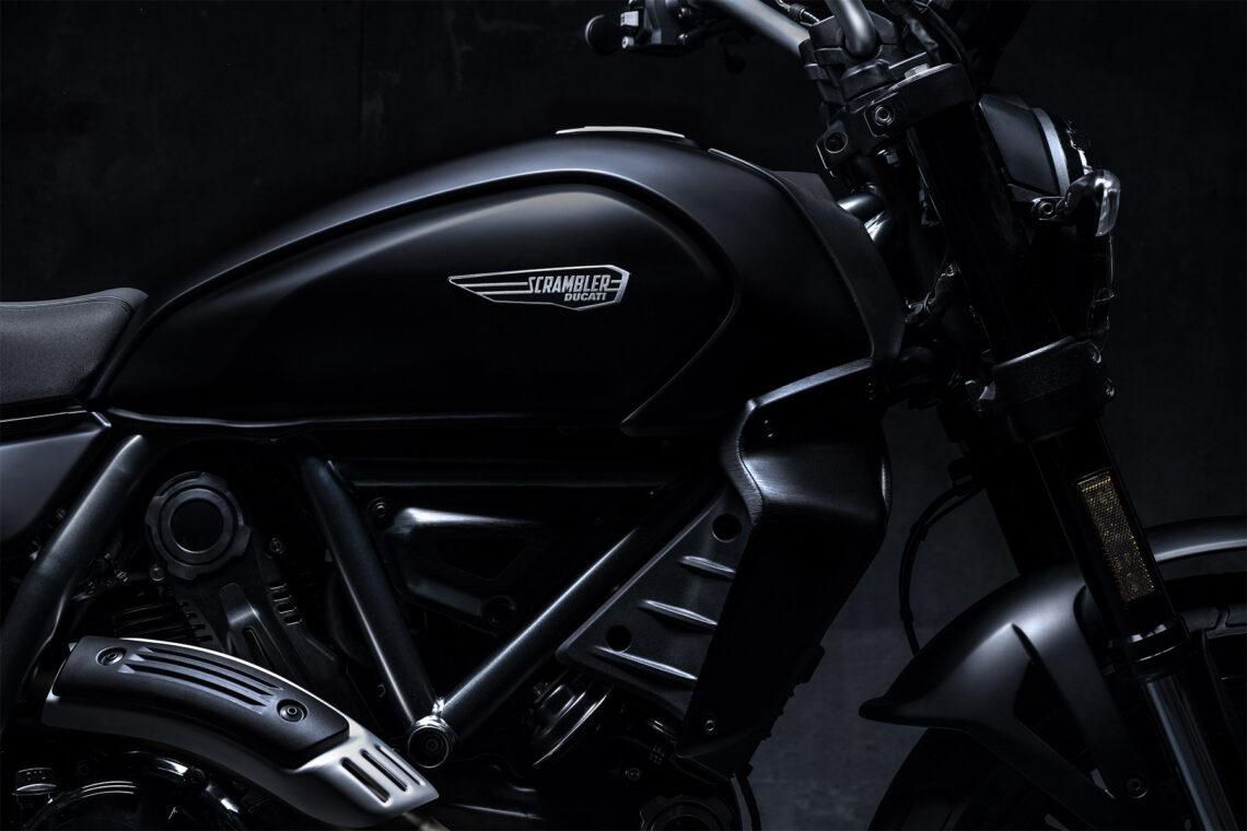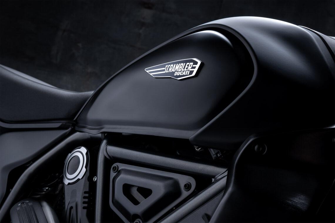 El logotipo Scrambler en el depósito Dark Stealth es más moderno y pega con la agresividad del negro mate. Los paneles laterales y el carenado trasero hacen que transmita una imagen más ligera y elegante.