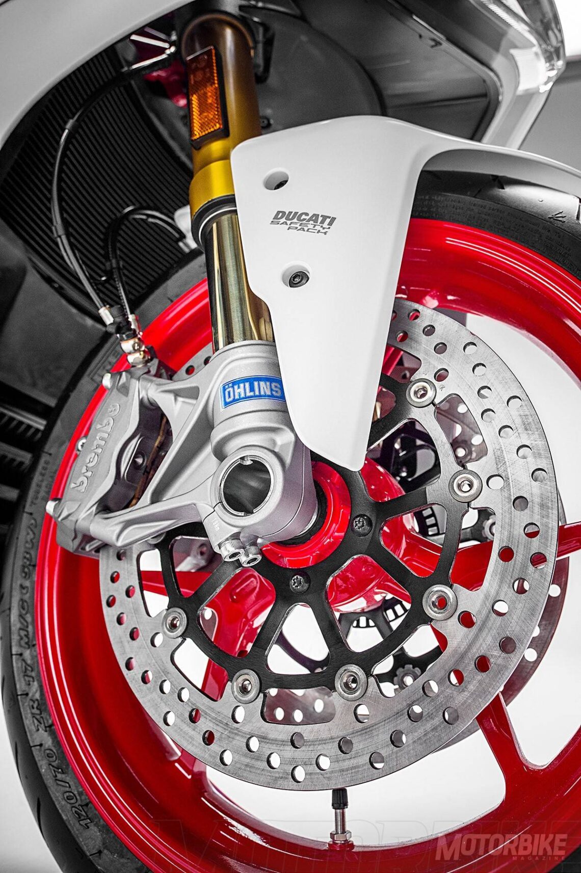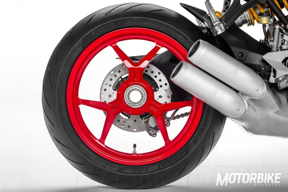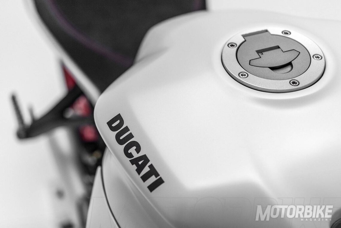 Las principales diferencias están en las suspensiones Öhlins totalmente ajustables, el cambio rápido Ducati Quick Shift (subir y bajar marchas) y una cubierta para hacerla monoplaza.