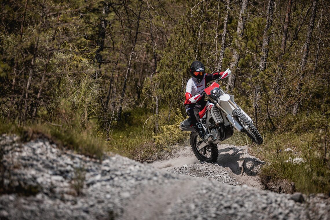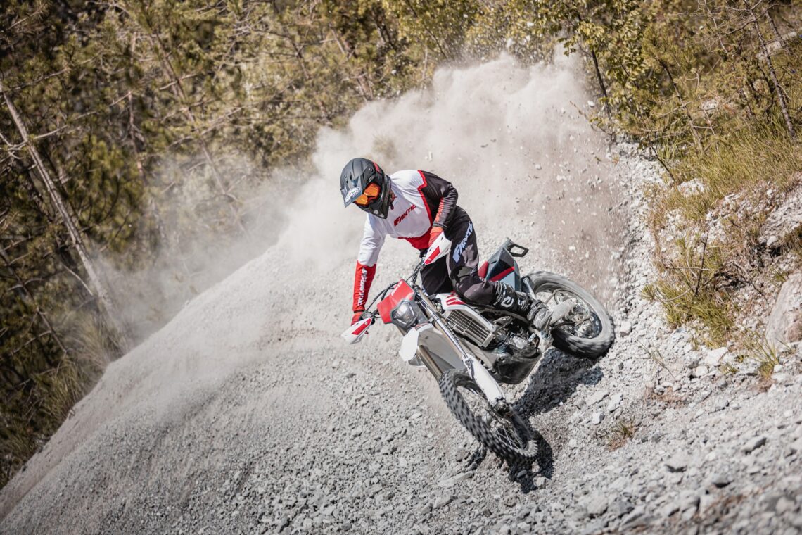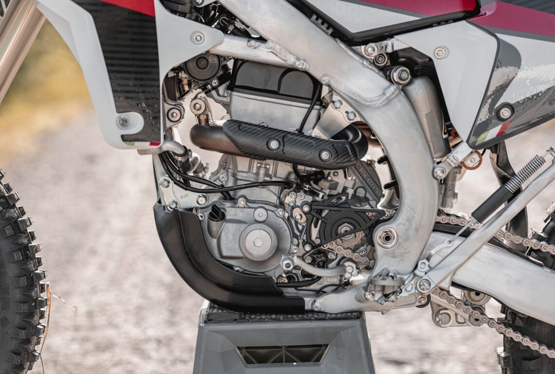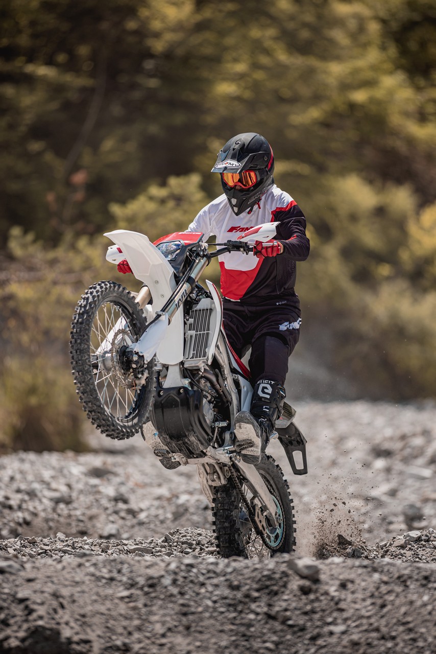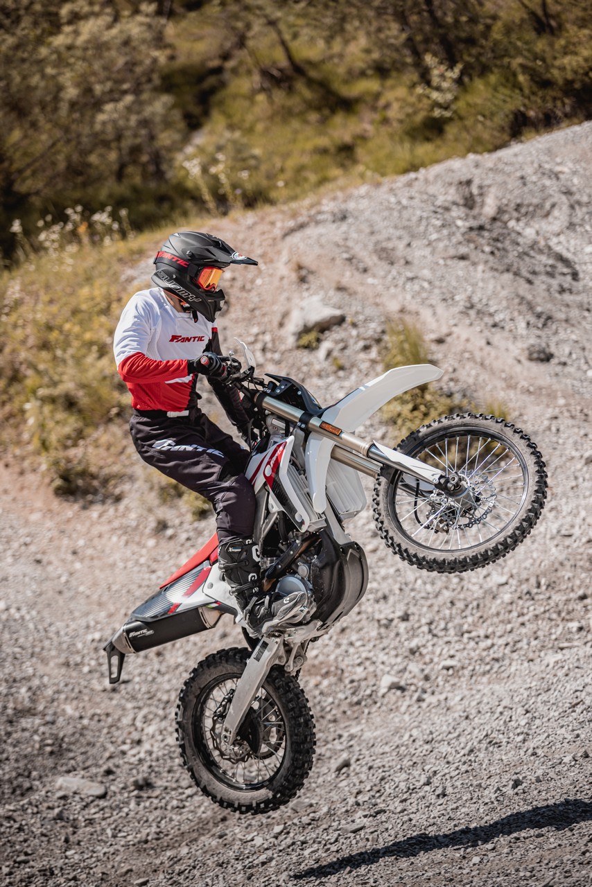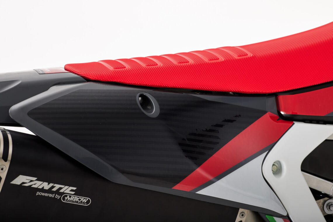 La Fantic XEF450 es una moto de enduro que saca pecho por su rendimiento, con un motor monocilíndrico 4T que rinde más de 55 cv de potencia, pero que a la vez destaca por su equilibrio y control. Cuenta con doble árbol de levas y transmisión. La cabeza invertida y el cilindro ligeramente inclinado hacia atrás garantiza mayor agilidad y facilidad de manejo. El escape está diseñado para asegurar el mejor comportamiento del motor. Desarrollado en colaboración con Arrow, el colector abraza el cilindro para centralizar las masas.