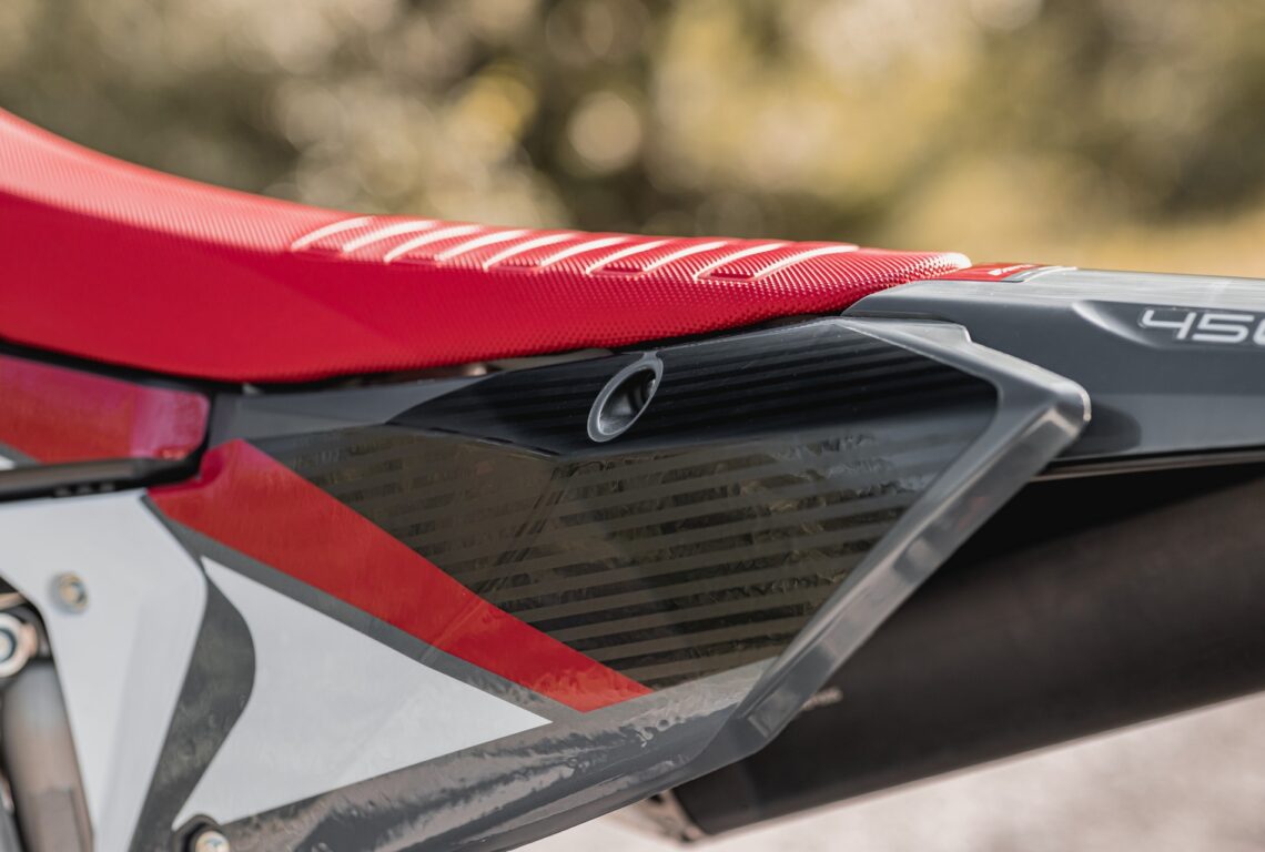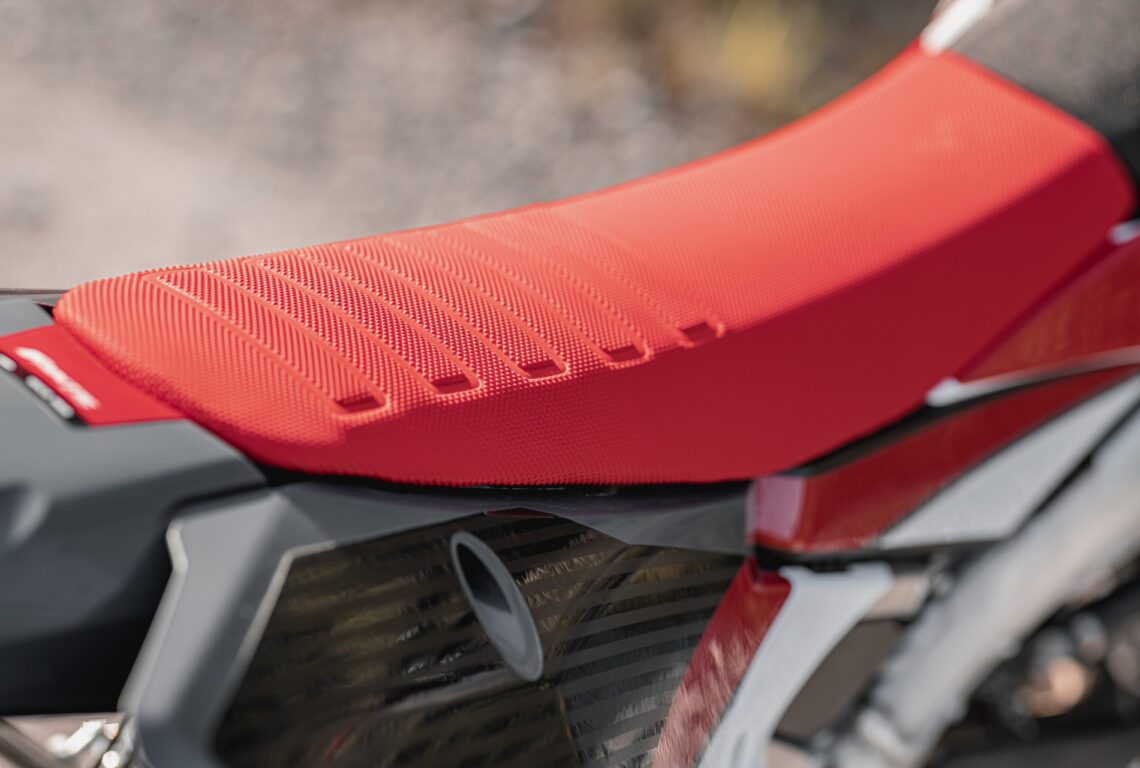 Confían en las suspensiones KYB SSS con las mismas características de 48 mm, 300 mm de recorrido, cartucho cerrado y regulación completa, igual que el monoamortiguador trasero con 315 mm de recorrido. Los trabajos de ergonomía también se han llevado a cabo en esta cilindrada. El asiento se ha actualizado para dotarlo de mejor agarre.