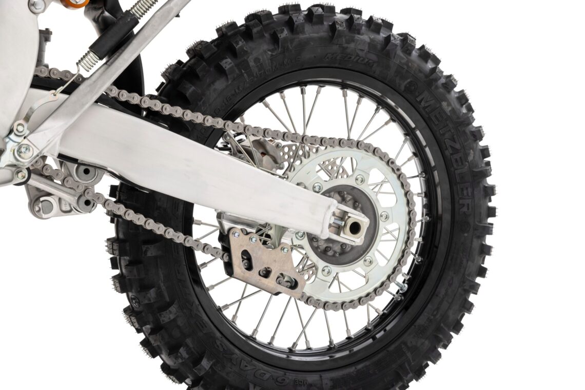 El chasis está hecho de aluminio ultra-ligero y se complementa a la perfección con las suspensiones KYB SSS ajustables al completo en ambos ejes, con una horquilla de cartucho cerrado de 48 mm y 300 mm de recorrido además del monoamortiguador de 315 mm.