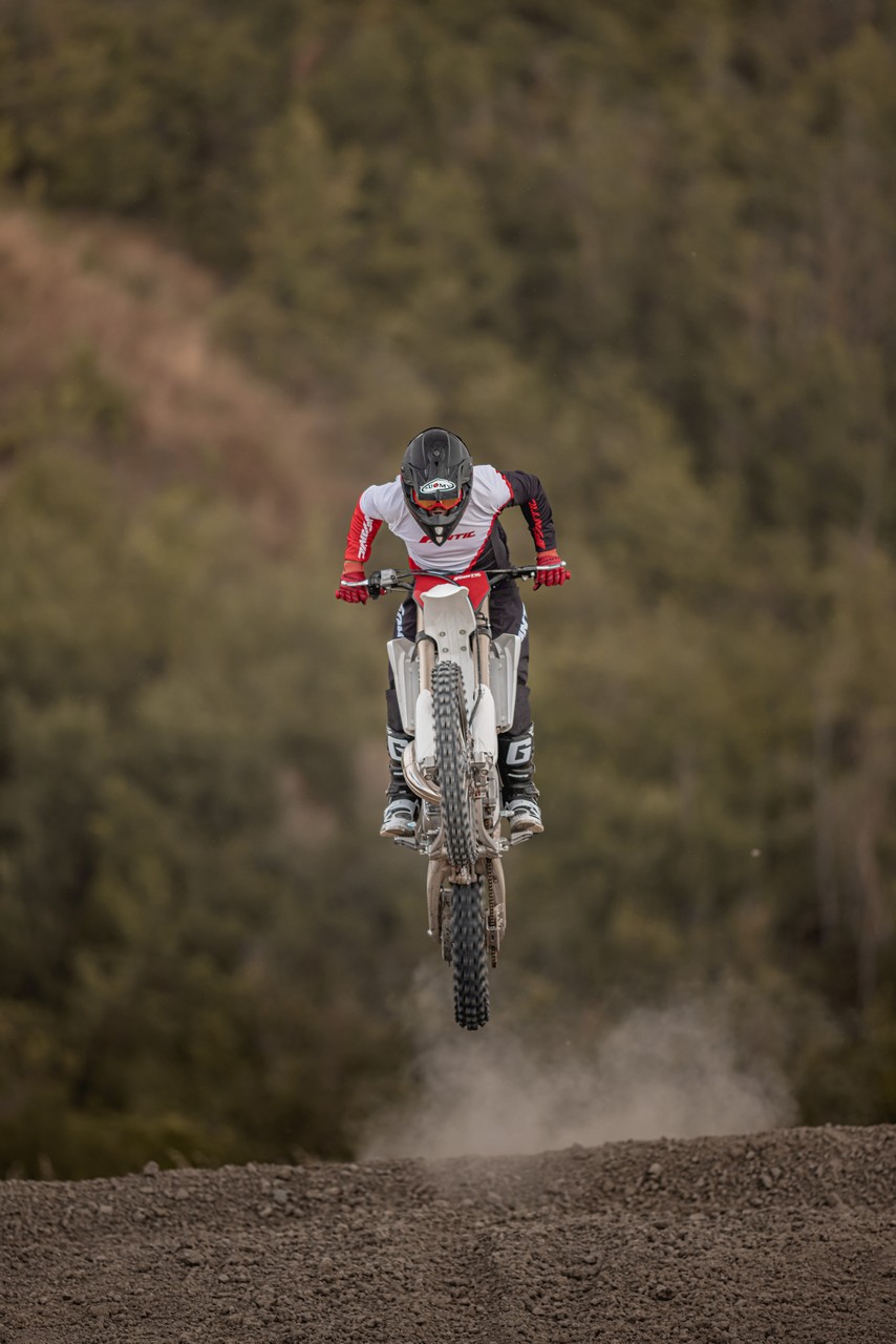El eje trasero se ha rediseñado con un nuevo airbox con acceso lateral del filtro (sin herramientas y más rápido que nunca). El tamaño se ha regido después de cuidadosos análisis y pruebas realizadas con pilotos oficiales. También buscando minimizar la entrada de impurezas y así asegurar un aire totalmente limpio.