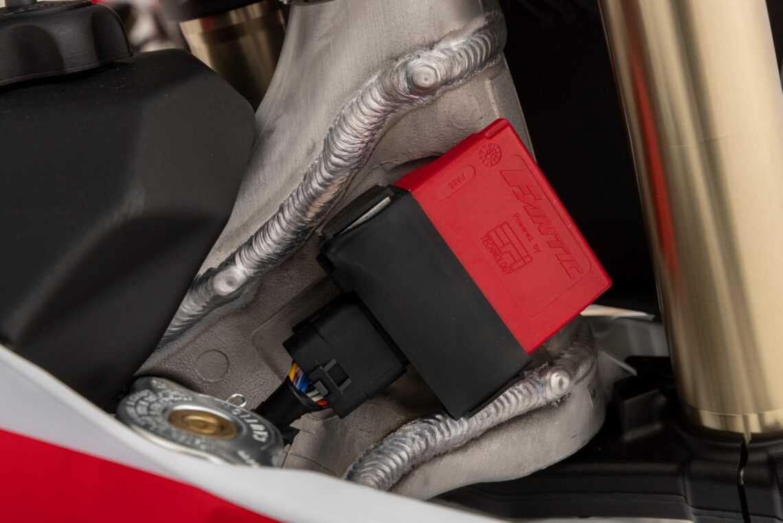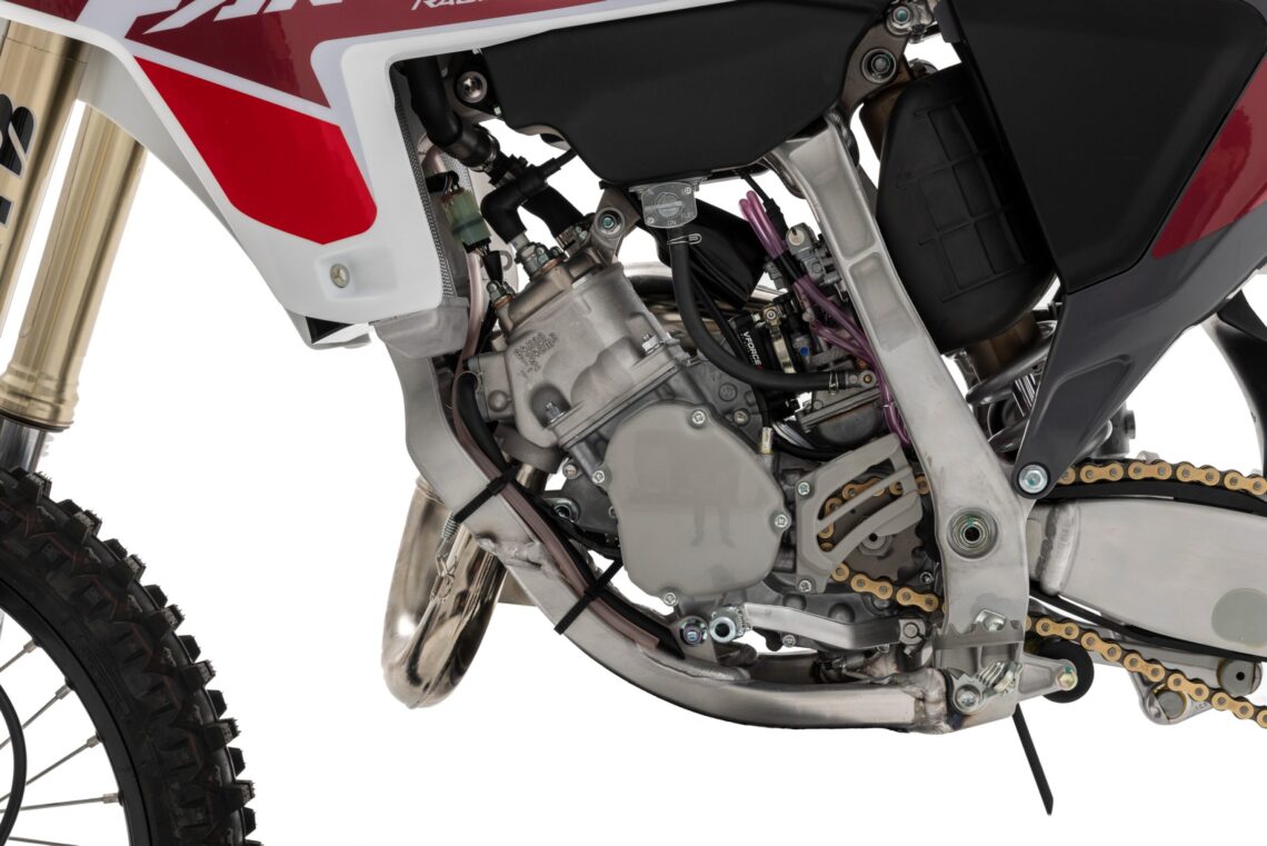 La gestión electrónica también es ejemplar y es donde la marca pone su toque diferenciador, con la posibilidad para que el piloto pueda elegir entre dos modos de motor, el cual es un poderoso propulsor a carburador Kehin de 38 mm.