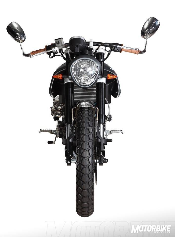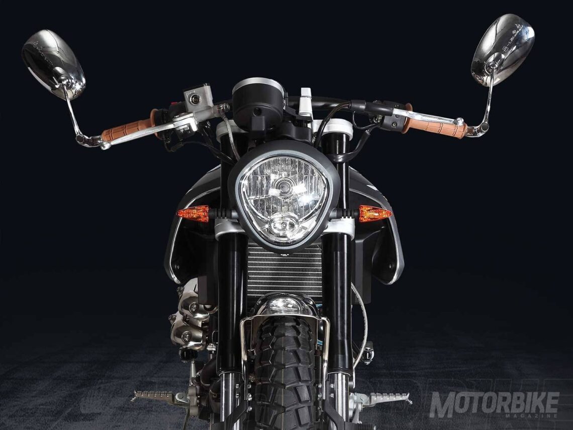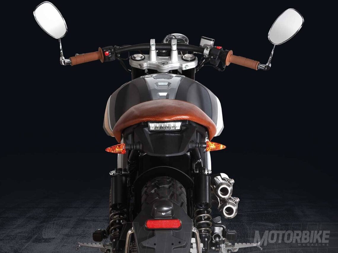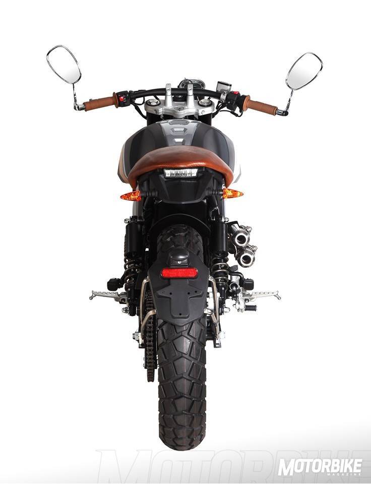 Sorprende estéticamente por sus detalles de estilo retro como el doble escape por el lado derecho, pero también resulta cómoda por su posición de conducción. Cuenta con frenada combinada y sus 130 kg de peso son muy manejables.