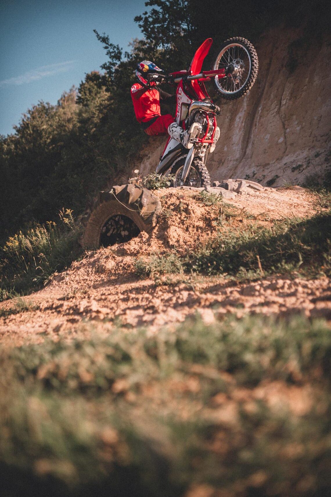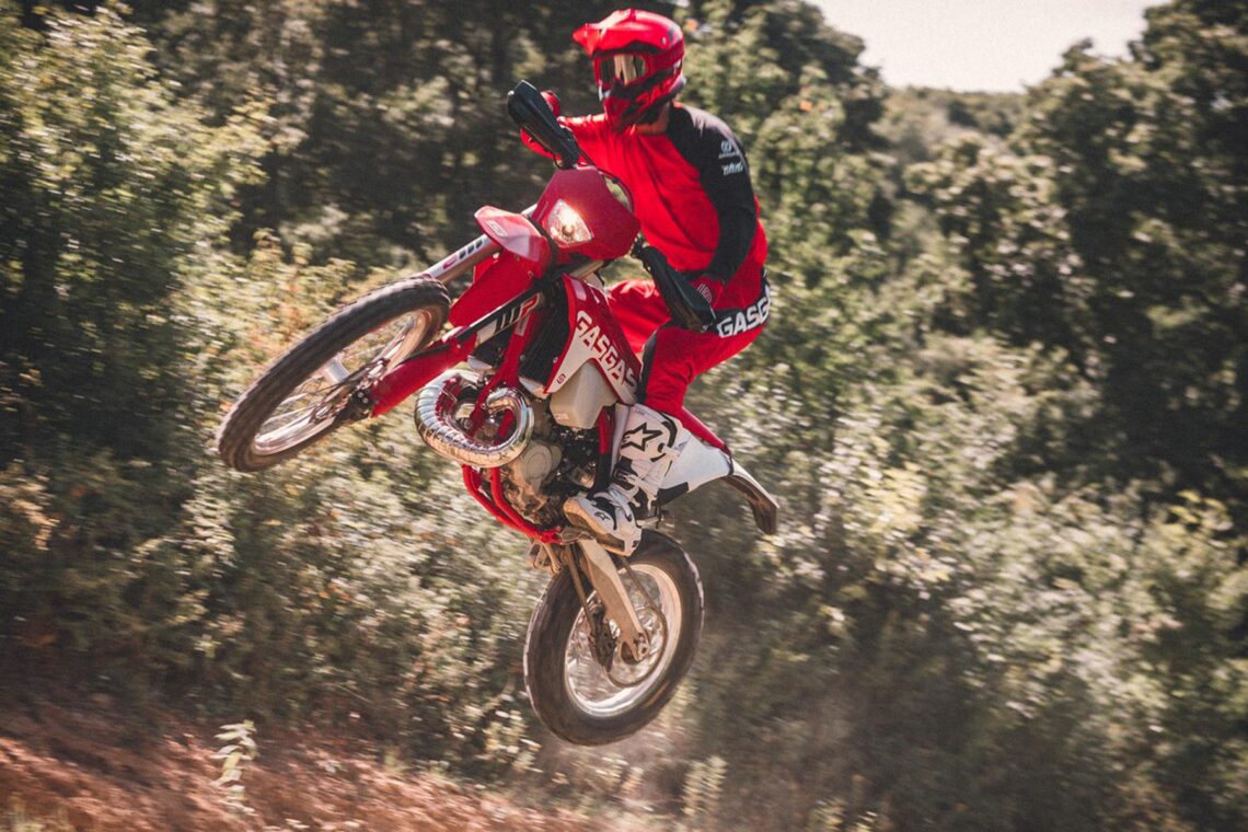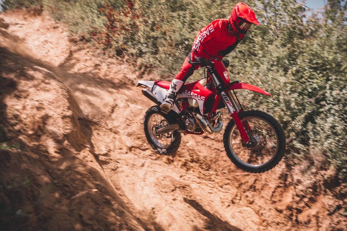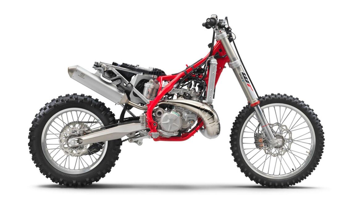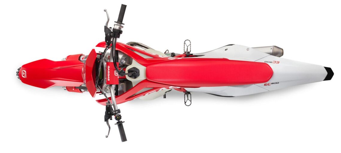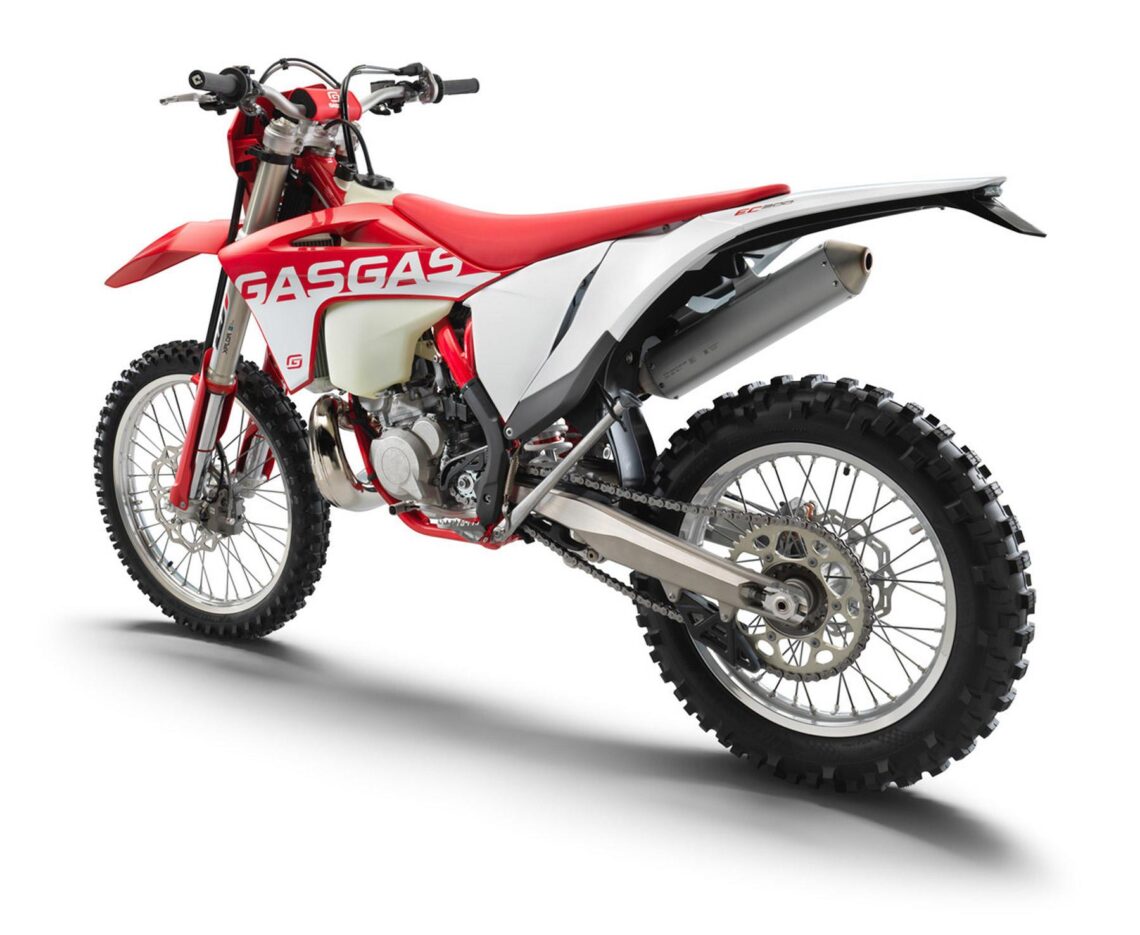 La GasGas EC 300 es la opción de la marca para los amantes del enduro extremo. Monta chasis de cromo-molibdeno cortado a láser unido a un basculante robusto y ligero en el que podemos ver el ajuste de cadena. En cuanto a suspensiones, dispone de horquilla invertida WP Xplor 48 con ajuste de rebote y monoamortiguador WP Xact con 300 mm de recorrido y ajuste de compresión. Para el embrague y los frenos se ha elegido la marca Braktec, con disco frontal lobulado de 260 mm y disco trasero de 220 mm. En el caso del manillar, se ha optado por Neken, mientras que el depósito es de 8,5 litros y una caja de cambios Pankl de 6 marchas. Una de las novedades en la marca es la introducción del sistema de inyección que se gestiona con una centralita y un cuerpo de acelerador Dell'Orto de 39 mm.