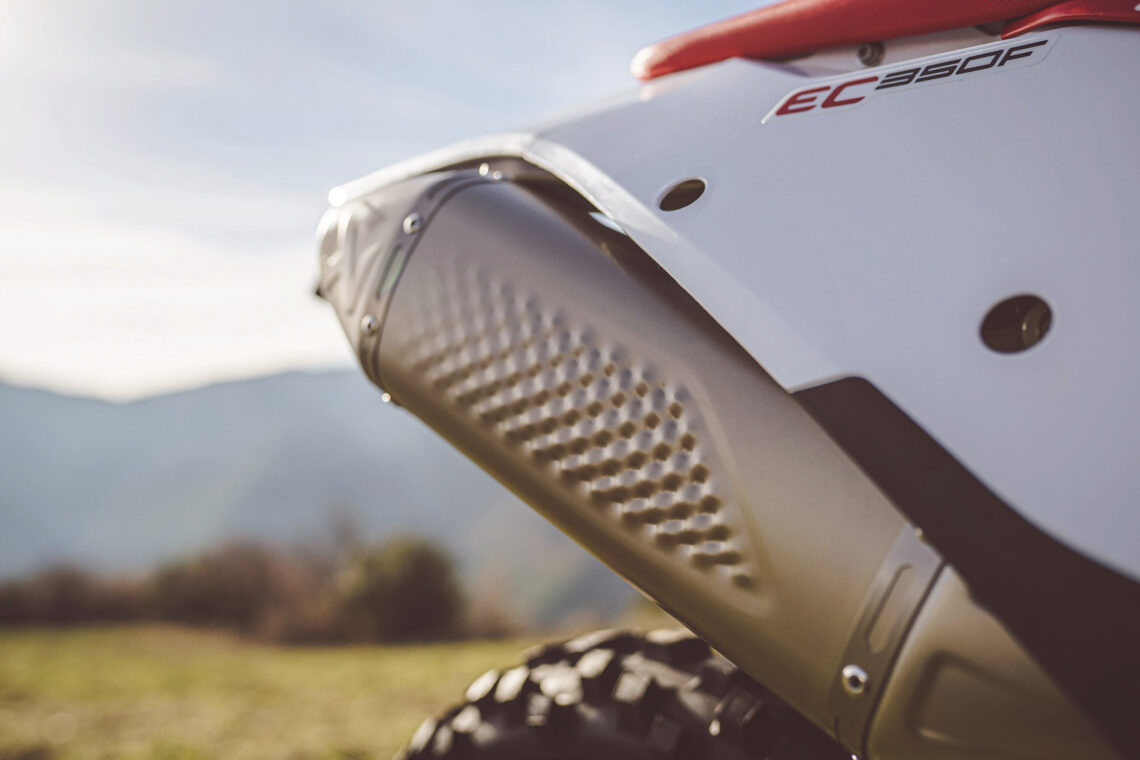 La GasGas EC 350F se es la opción de mayor cilindrada no sólo en los motores 4T sino en toda la familia de enduro, dando por buena su gran relación peso-potencia-manejabilidad. Es la misma que el modelo anterior, aunque con novedades estéticas.