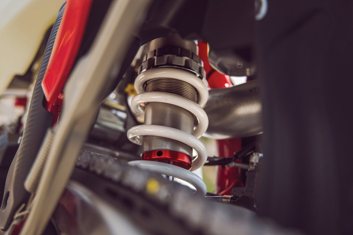 - Amortiguador trasero WP XACT con sistema de bieletas trasero - Ajustes actualizados con mejor rendimiento progresivo.