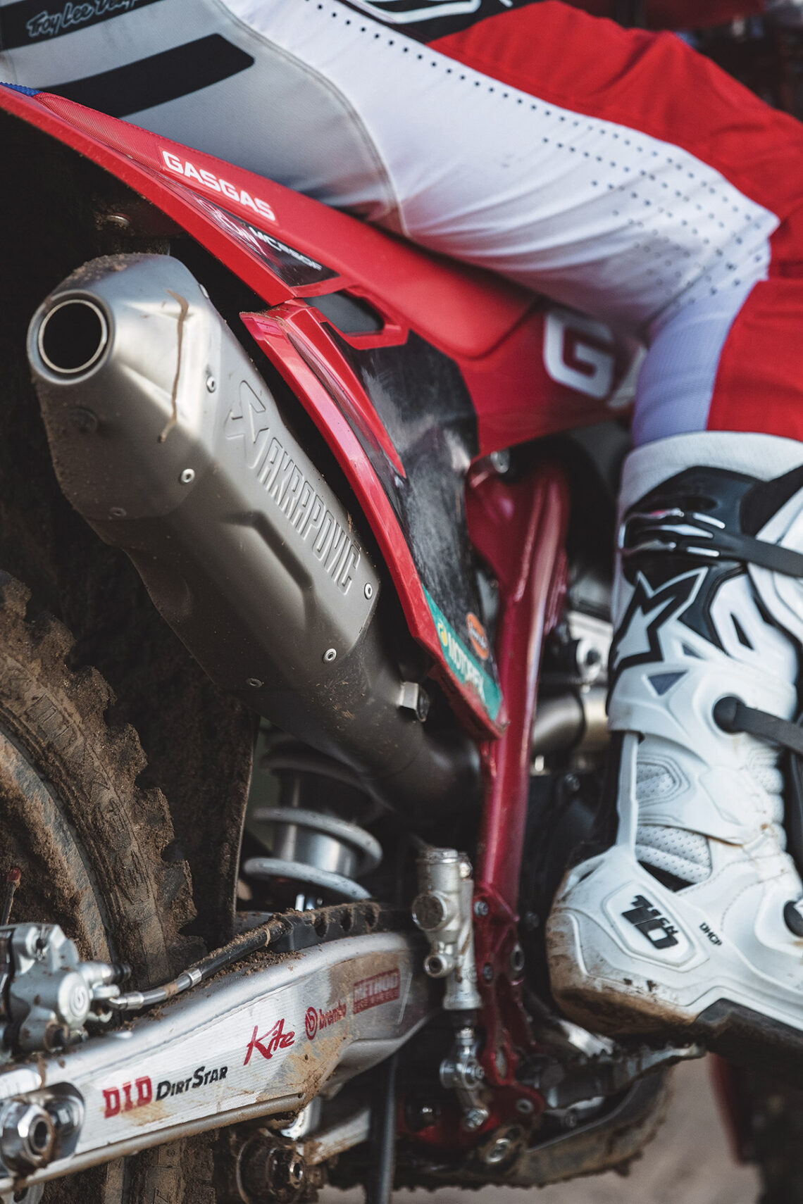 - Nueva carrocería y gráficos - Los nuevos plásticos y los últimos gráficos Red Bull/Troy Lee Designs/ GASGAS Factory Racing tienen un aspecto muy atractivo. Pero hay mucho más en la carrocería actualizada, ya que las áreas de contacto con las rodillas son ahora más grandes, lo que permite a los pilotos sujetarse mejor a la moto al acelerar.