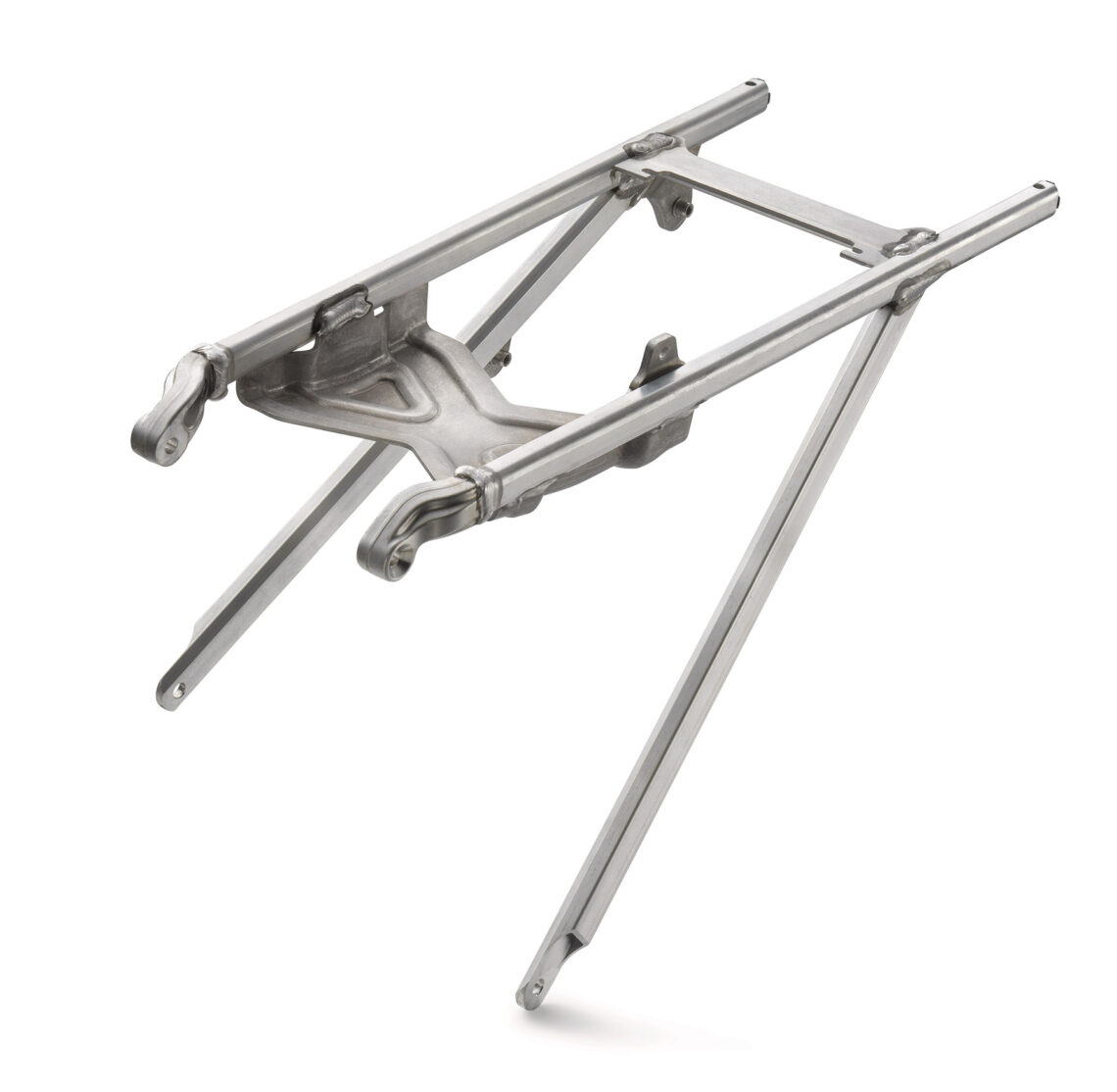 - Nuevo basculante fundido a presión - Un proceso de fundición mejorado reduce el peso en 190 gramos en comparación con el antiguo basculante. Está diseñado para trabajar con la flexibilidad del nuevo chasis, y se completa con un nuevo guía cadena diseñada para evitar la acumulación de barro y ayudar a mantener el impulso hacia adelante en las curvas con roderas profundas.