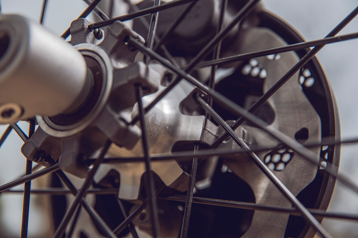 - Llantas resistentes y ligeras con bujes mecanizados.