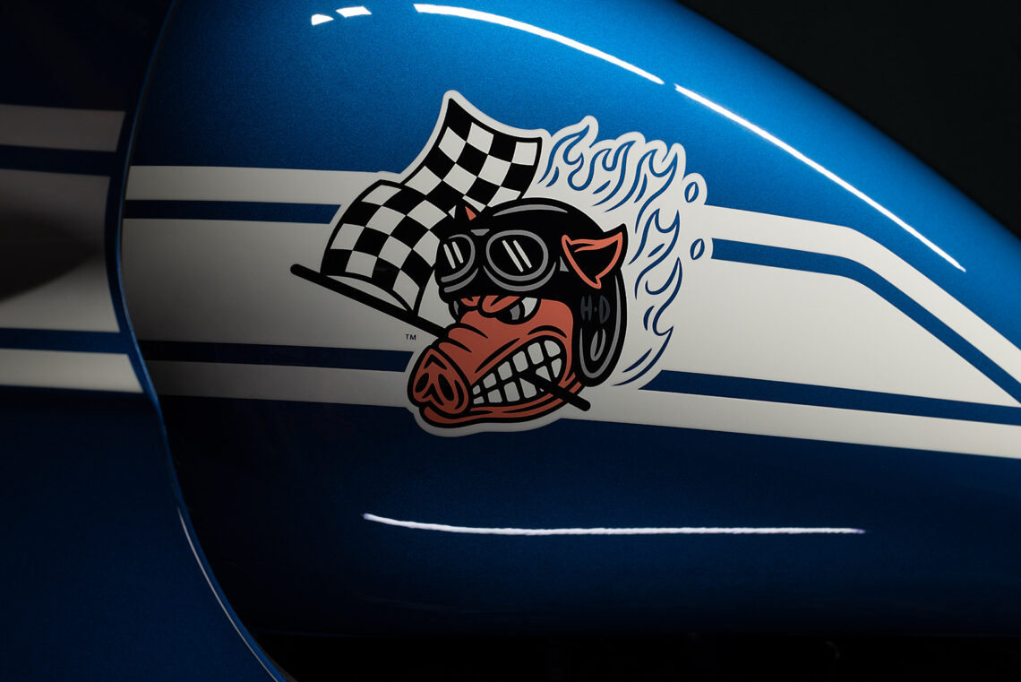 Se inspiran en modelos de altas prestaciones de los años 60 y 70, con unas franjas 'racing' sobre un color base llamativo y un símbolo o personaje ingenioso incorporado en el diseño. Con estos elementos se conseguía diferenciar de manera evidente la versión estándar y la versión de alto rendimiento de un coche. Vemos la mascota Fast Johnnie en el lado izquierdo del depósito, el cual también está en las motocicletas del equipo de fábrica Harley-Davidson Screamin' Eagle que compiten en la serie MotoAmerica King of the Baggers. Se inspira en un cerdito llamado Johnnie adoptada en 1920 por el piloto de Harley-Davidson y miembro de la famosa "Wrecking Crew", Ray Weishaar, y que acabó convirtiéndose en la mascota del equipo. Este cerdito solía dar la vuelta de honor encima del depósito de combustible de una motocicleta Harley-Davidson para celebrar la victoria en una carrera y que la leyenda relaciona con el origen del apodo "HOG" (cerdo), que a día de hoy sigue utilizándose de forma coloquial para citar a las motocicletas de la marca.