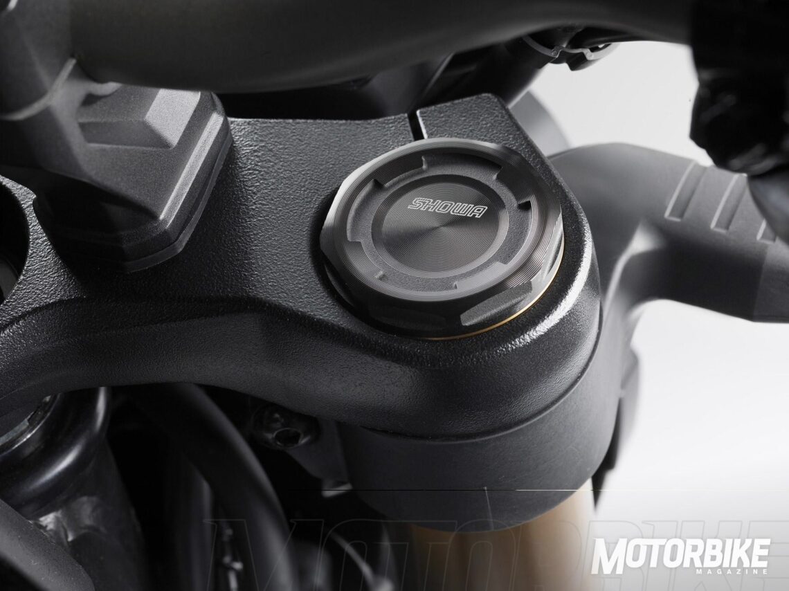 Si nos detenemos en el resto de la moto veremos que sus características se mantienen invariables. Hay que mencionar la horquilla invertida Showa Separate Function Big Piston (SFF-BP) de 41 mm que Honda introdujo en su modelo anterior, una suspensión de alta calidad que separa la función del hidráulico en una barra y la del muelle en la otra, lo que permite emplear un pistón de mayor tamaño, con mayor ligereza y mejorar el control general y la función de amortiguación. Detrás confía en un monoamortiguador ajustable en precarga de muelle en 7 posiciones.