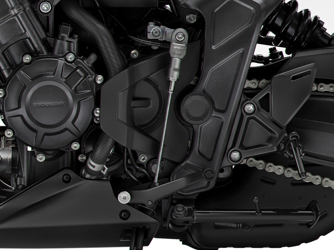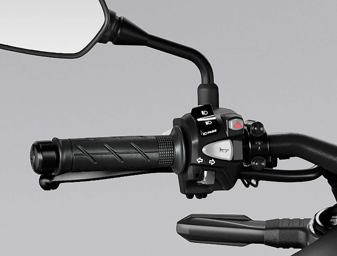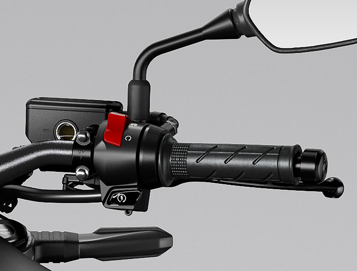 En el caso de la Negro Gunpowder Mate Metalizado se eleva al máximo su aspecto deportivo con detalles totalmente negros en todo el conjunto, incluyendo tapa de culata, carcasas de motor, barras de horquilla, protectores laterales, manetas y reposapiés.