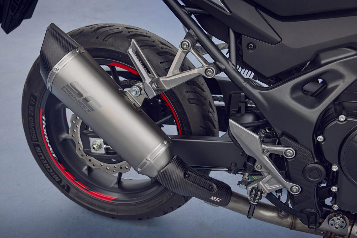 El nuevo sistema de instrumentación, una pantalla TFT de cinco pulgadas, es compatible con el sistema de conectividad Honda RoadSync, que permite acceso a navegación, llamadas y música, todo manejable mediante un conmutador de cuatro direcciones, situado en el lado izquierdo del manillar. Los intermitentes traseros con función de Señal de Parada de Emergencia (ESS) y cancelación automática añaden un nivel de seguridad adicional.