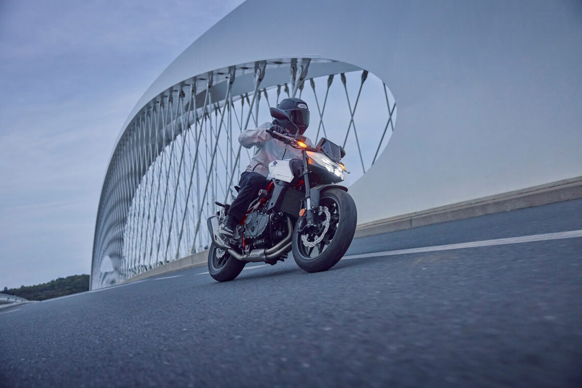 El motor de la Hornet, un bicilíndrico en paralelo de 755 cc con sistema Unicam y 8 válvulas, sigue siendo característico el corazón de este modelo. Su potencia de 67,5 kW (90 CV) y 75 Nm de par permiten una experiencia de conducción llena de sensaciones en la que se destaca su relación potencia/peso de 0,36 kW por kg. Con su calado de cigüeñal a 270° y el uso de conductos de admisión con tecnología Vortex Flow Duct, este motor ofrece una respuesta precisa al acelerador y una sensación de empuje ideal para quienes buscan dinamismo en la conducción urbana y en carretera abierta.