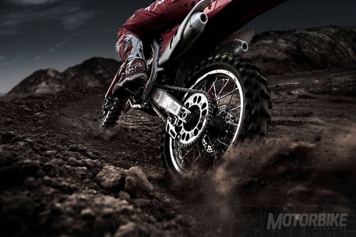 Por lo demás, la Honda CRF450R mantiene la base tan buena conseguida el año pasado, un modelo que partió desde cero después de 8 años sin grandes cambios. Esto supuso modificaciones más importantes como la geometría del chasis, la rebaja del centro de gravedad y la instalación de la horquilla Showa de 49 mm. Derivado del desarrollo realizado por HRC, se consiguió un motor con un 11% mayor de pico de potencia y mejor par motor a lo largo de todo el rango de revoluciones.