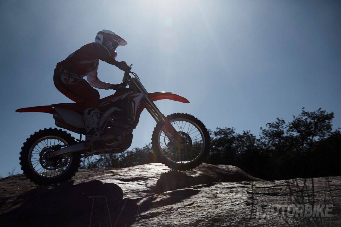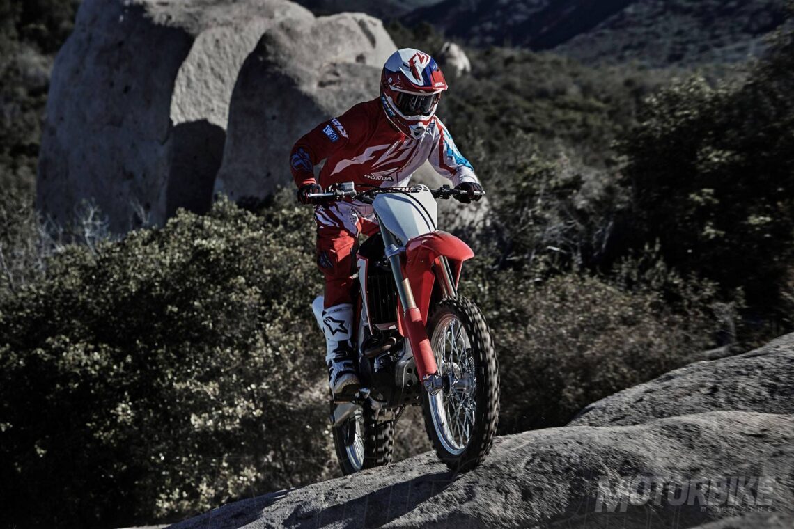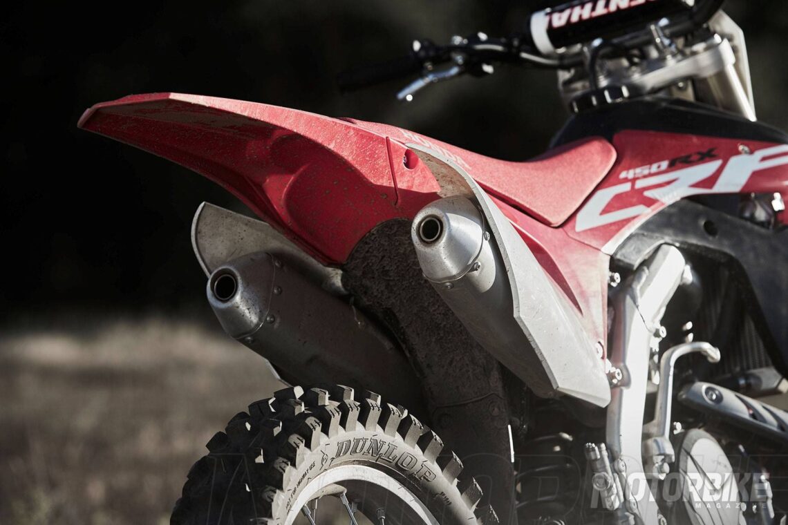 La Honda CRF450RX es la opción de los pilotos que quieran pilotar una Honda de enduro. Para ello, la CRF toma de base su versión de motocross CRF450R, pero adquiere características propias de enduro, como es la rueda trasera de 18 pulgadas o la pata de cabra. La suspensión también tiene un tarado configurado para el enduro, un depósito más amplio (8,5 litros), arranque eléctrico de serie y un mapa de la ECU y los mapas de motor enfocados a esta disciplina.