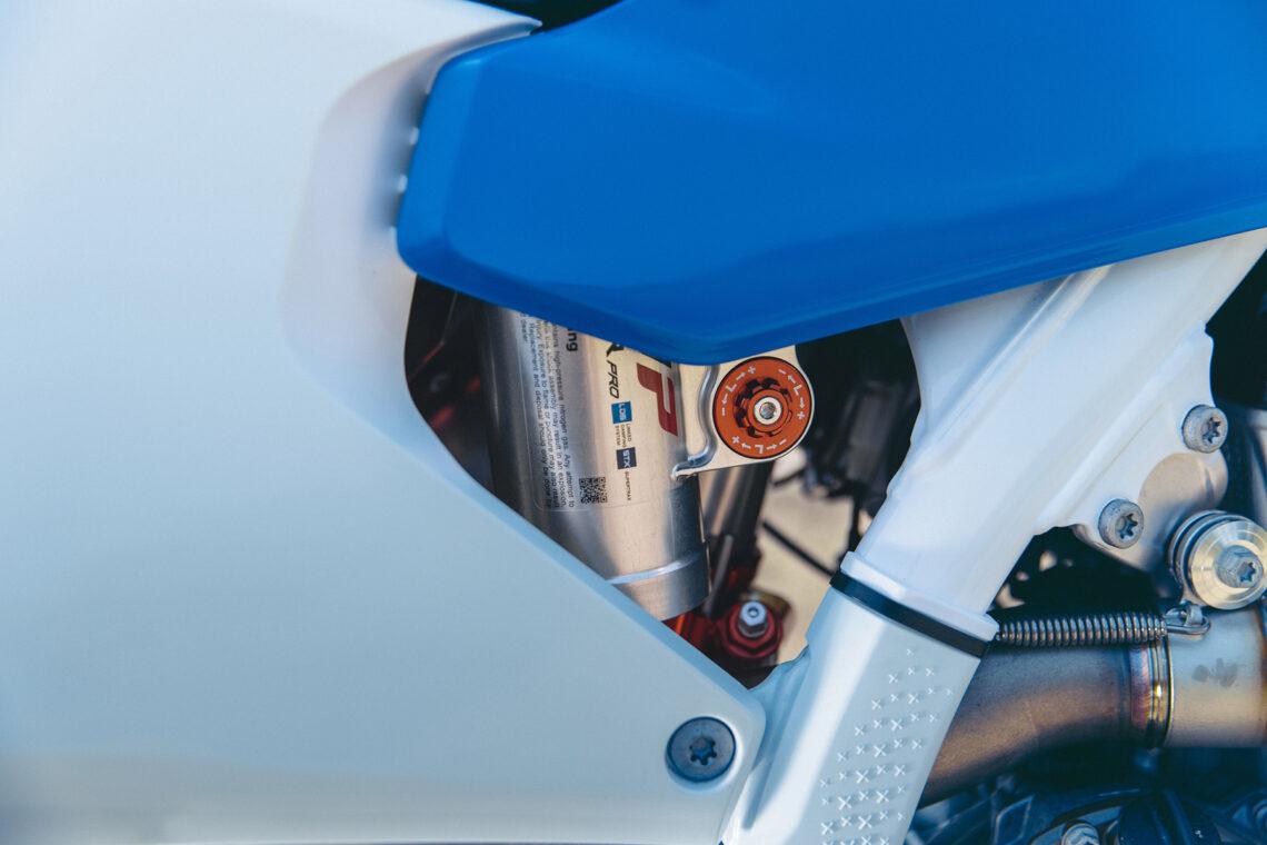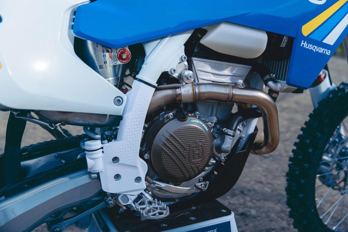 La Husqvarna FE 250 Heritage 2025 es una edición especial lanzada también esta temporada. Se caracteriza por lucir un diseño específico con los colores míticos de la marca junto a un asiento de alto agarre y una cubierta de radiador a juego en azul.