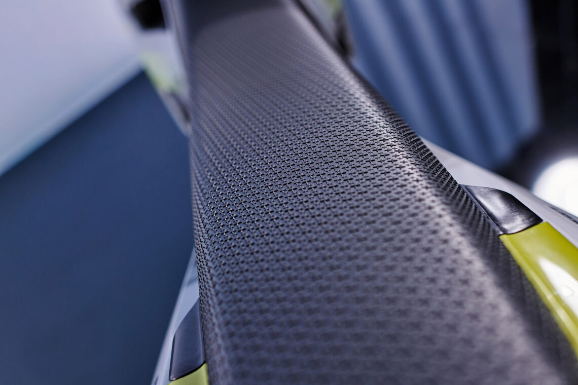 - La construcción híbrida del subchasis trasero en aluminio y poliamida proporciona una rigidez específicamente calculada y una gran durabilidad.