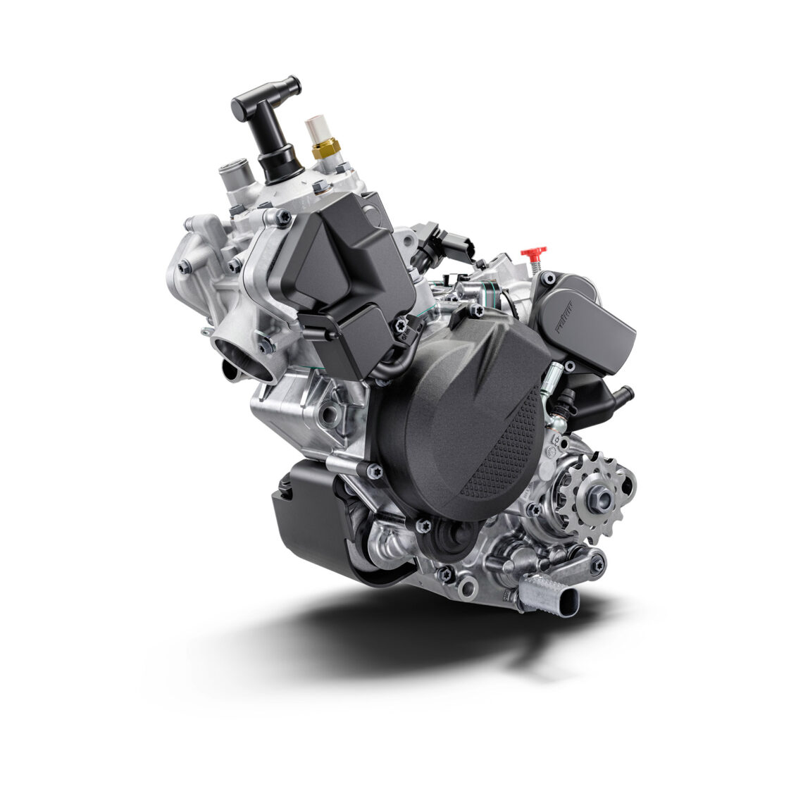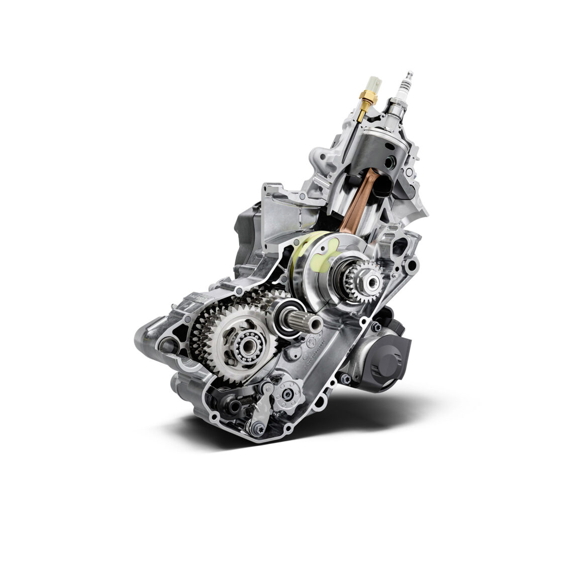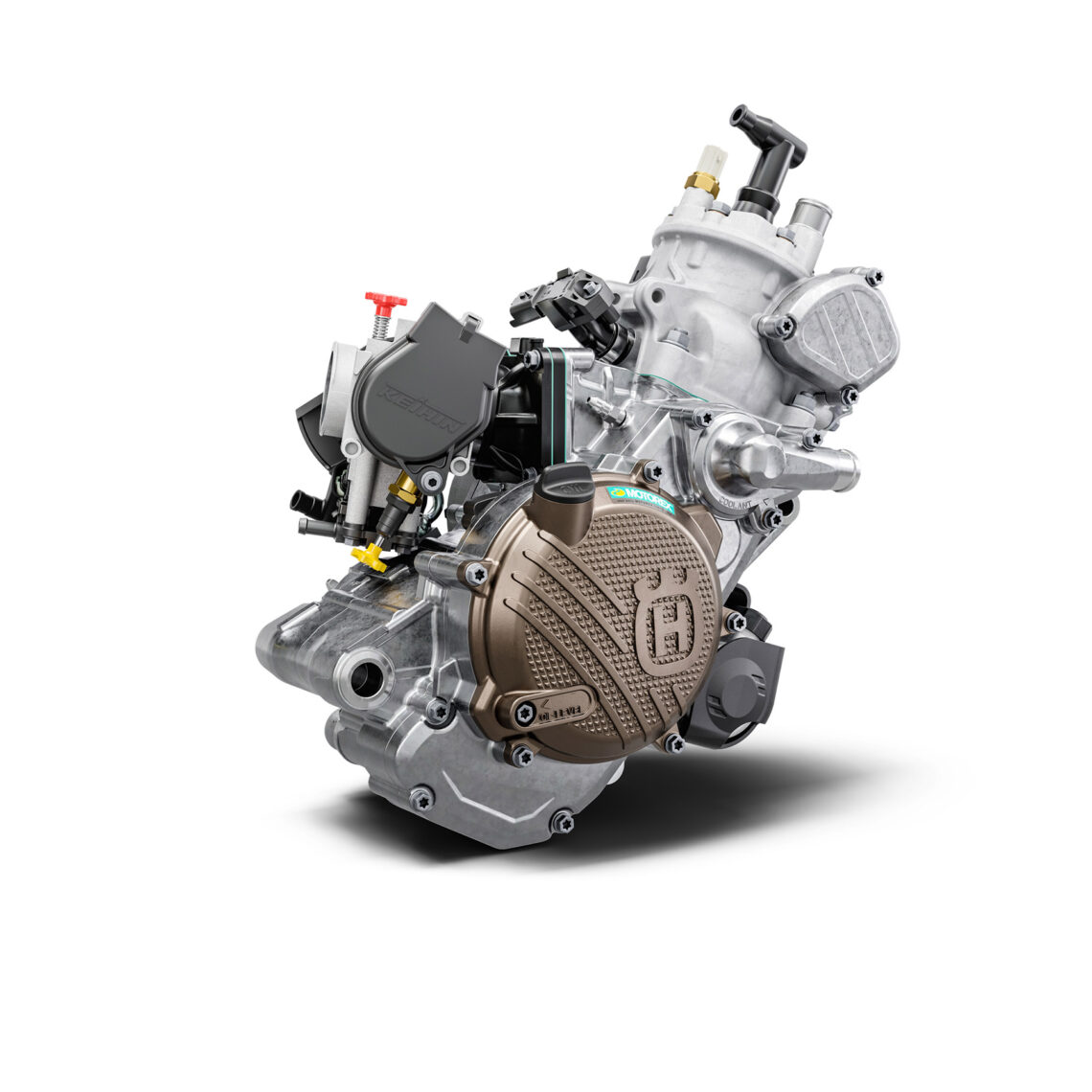 El usuario de las Husqvarna TE 2 tiempos pueden seguir elegiendo entre dos modos de motor, gestionado a través de la unidad de control de motor EMS, un dispositivo más pequeño, más ligero y con velocidad de procesamiento más rápida. Cabe mencionar el nuevo sensor de caídas (Rollover Sensor ROS) que corta el encendido en caídas graves