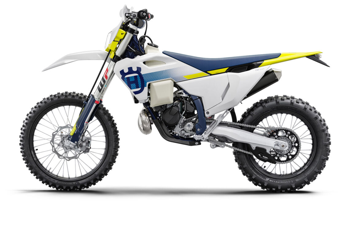 Otros detalles que son de estreno en las Husqvarna 2024 de enduro son el faro delantero LED con su máscara que no necesita gomas (se acopla directamente en las tijas) y un sistema de desmontaje fácil con una capacidad luminosa notablemente mejor (de 320 a 900 lúmenes). El velocímetro es nuevo, más fácil de leer y más robusto. Monta una batería ion-litio de 2,0 Ah de 1 kg menos que las convencionales. El sistema de refrigeración se ha mejorado tanto en una posición más centrada como en sus componentes. La Husqvarna 2T 2024 monta un nuevo depósito de 8,5 litros transparente en polietileno XPE con tapón a rosca y bomba integrada más protegida. El airbox se ha optimizado para aumentar el flujo de aire con el mejor filtrado y sigue siendo fácilmente accesible por el lateral sin herramientas. Cuenta con llantas de radios en negro firmadas por DID vestidas con neumáticos Michelin. La carrocería luce una nueva decoración mientras que la forma asegura un agarre y una adaptación perfecta para el pilotaje más exigente. El asiento cuenta con una nueva cubierta con mejor agarre.