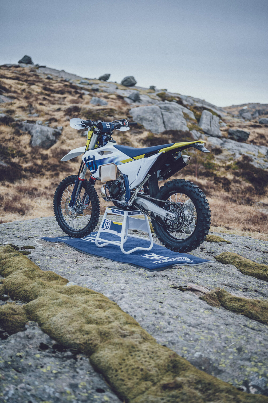 Si empezamos por los avances comunes a toda la gama, hablamos del chasis hidroformado, cortado a láser y con soldadura robotizada, totalmente nuevo para dar con el equilibrio perfecto de rigidez, flexión, estabilidad y absorción de energía. La conexión con la horquilla y las masas rotacionales están reposicionadas mientras que el monoamortiguador ya no se apoya en el tubo principal, mejorando así el comportamiento anti-squat. Se ha revisado también la anchura de las paredes para reforzar la rigidez o la flexibilidad en ciertos puntos. Las estriberas ahora quedan un poco más hacia dentro, más protegidas, pero son nuevas y más grandes diseñadas mediante dinámica de fluidos computacional (CFD). El nuevo retén de sellado permite un montaje más fácil en caso de sustitución o mantenimiento y además el tubo superior está cerrado para evitar que entre agua, polvo o gasolina que desborda del conducto, ahora reconducido. El nuevo bloqueo de la dirección está bajo la triple tija. Los modelos 2T siguen teniendo el depósito de aceite integrado en el chasis y se ha optimizado para adaptarlo al nuevo concepto de chasis. La estructura luce un acabado en color azul metálico mientras que los protectores son nuevos. Las Husky de enduro estrenan también una pata de cabra lateral nueva hecha de una pieza.