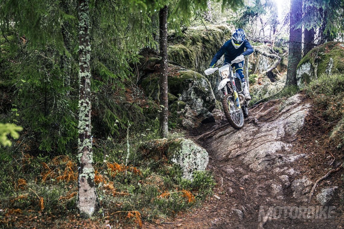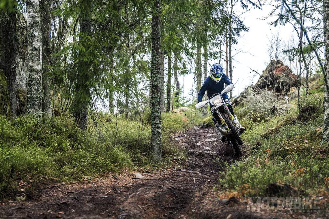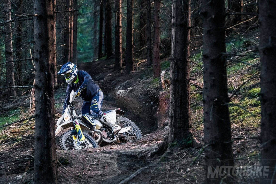 La Husqvarna TE 250i sigue destacando también por la selección de dos curvas de potencia, la horquilla WP Xplor 48 (nuevos tubos y ajustes), nuevas pinzas de freno Magura y discos GSK y un nuevo manillar ProTaper.