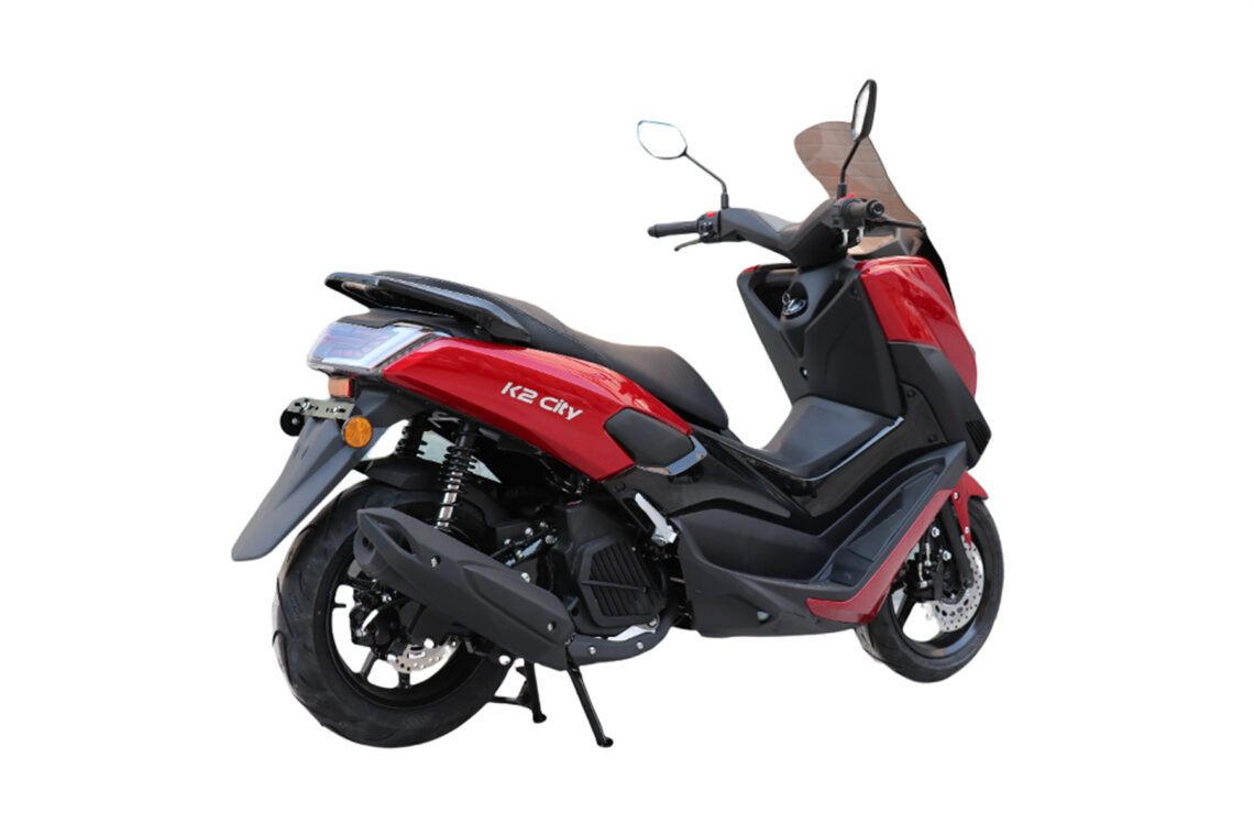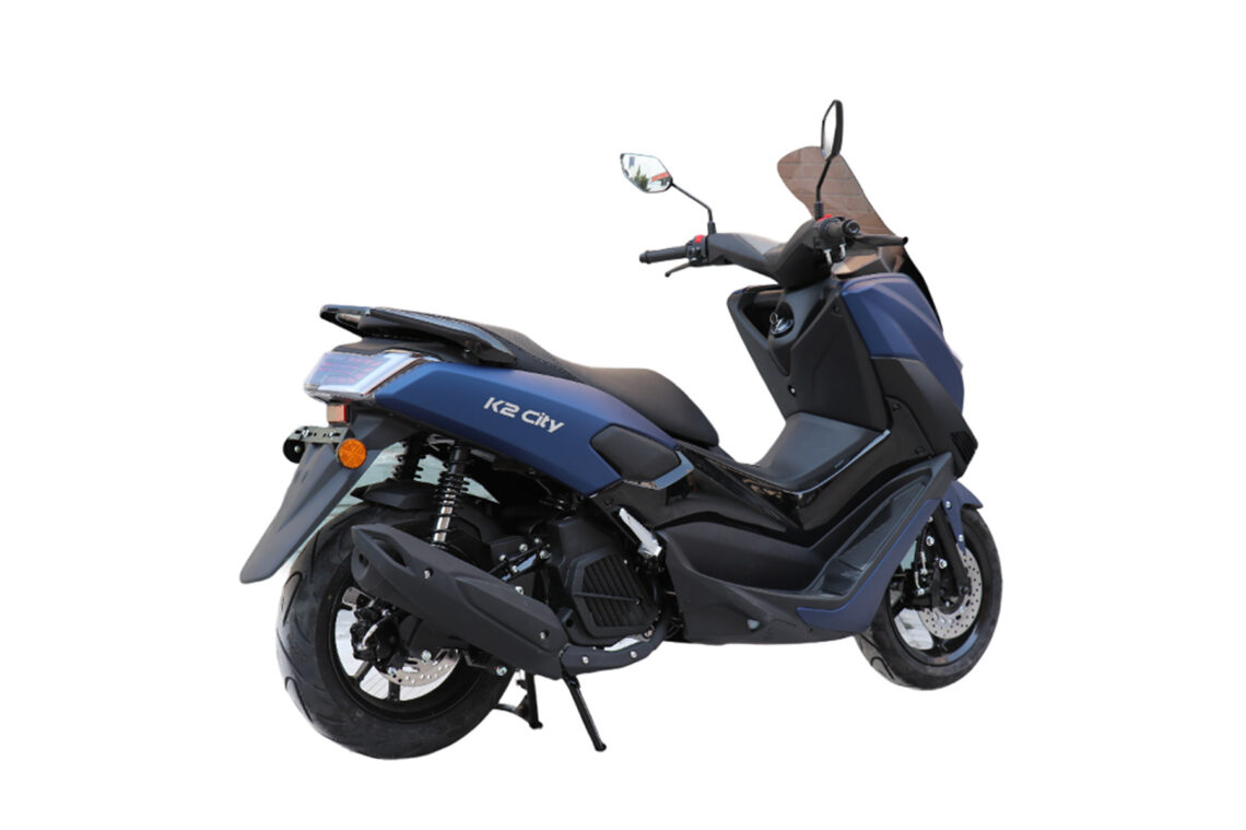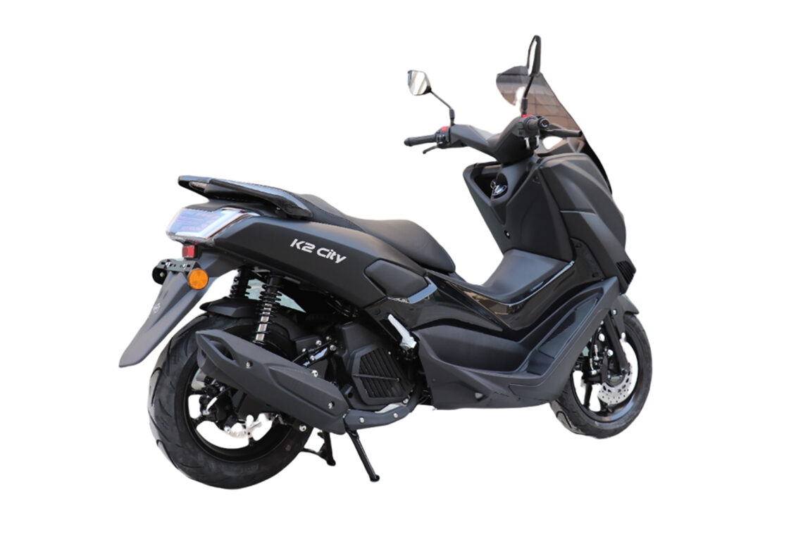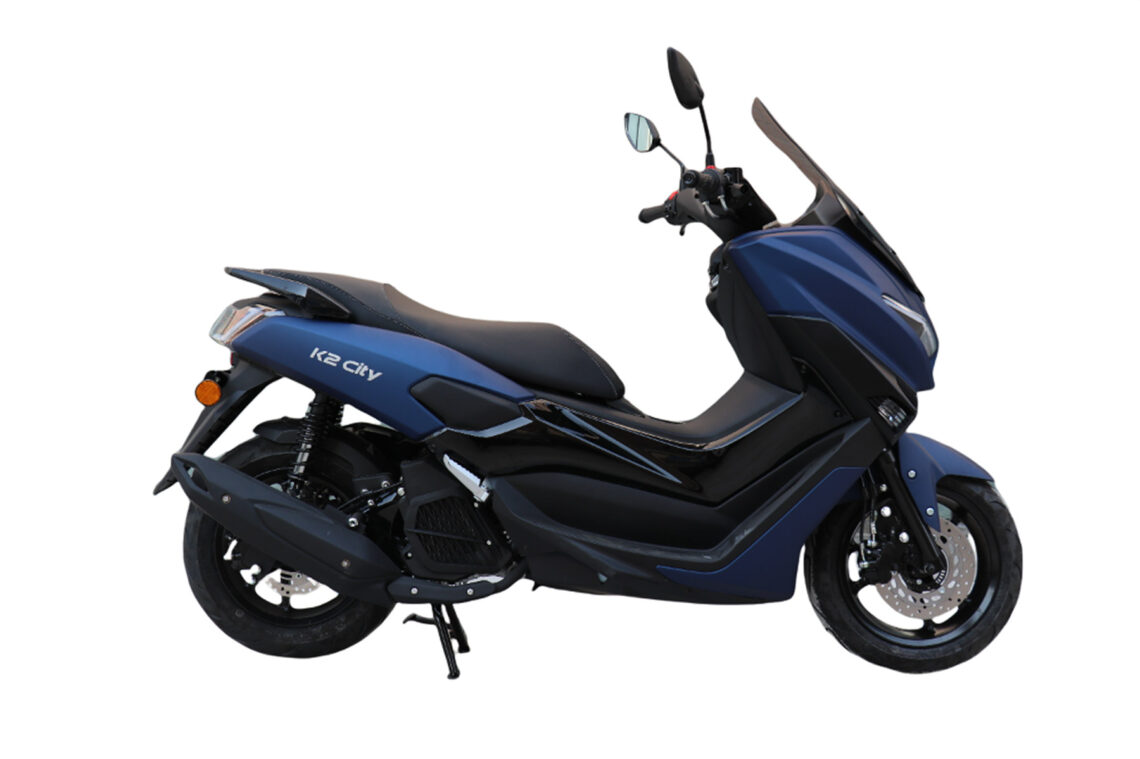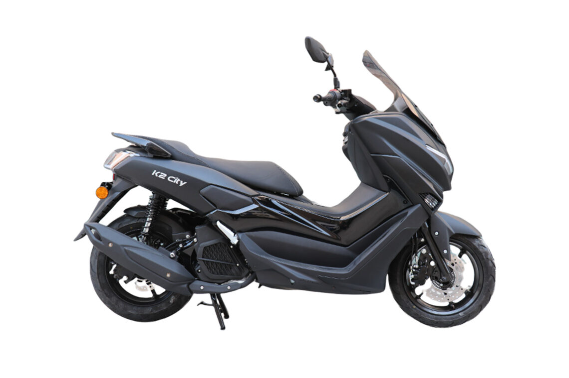 Este scooter 125 se mueve gracias a un monocilíndrico refrigerado por agua y que declara 13 cv de potencia. Uno de los puntos fuertes del Huve K2 City y que elevan su nivel en cuanto a relación calidad-precio es su equipamiento, ya que encontramos una pantalla TFT a color muy atractiva y clara, pero también tiene detalles como la llave inteligente o una doble toma USB para recargar dispositivos. Las estriberas del pasajero son plegables y bajo el asiento encontramos espacio suficiente para guardar un casco jet y algunos objetos más. Las llantas son de 13" mientras que en cada eje encontramos un disco de freno, ambos trenes con frenada combinada CBS.