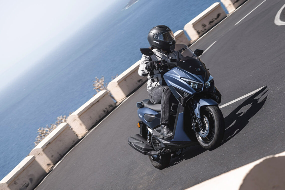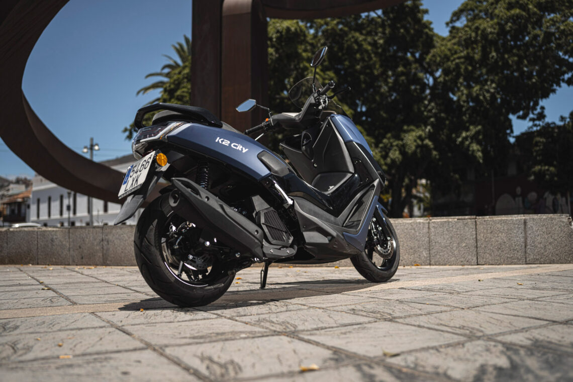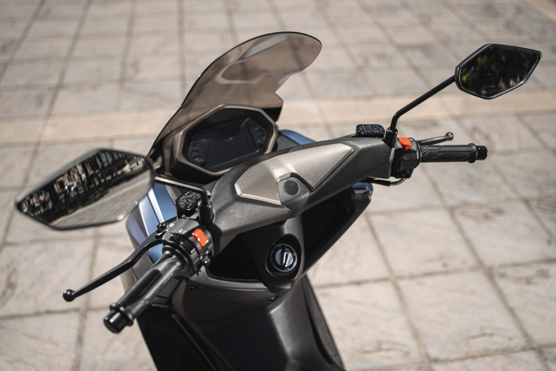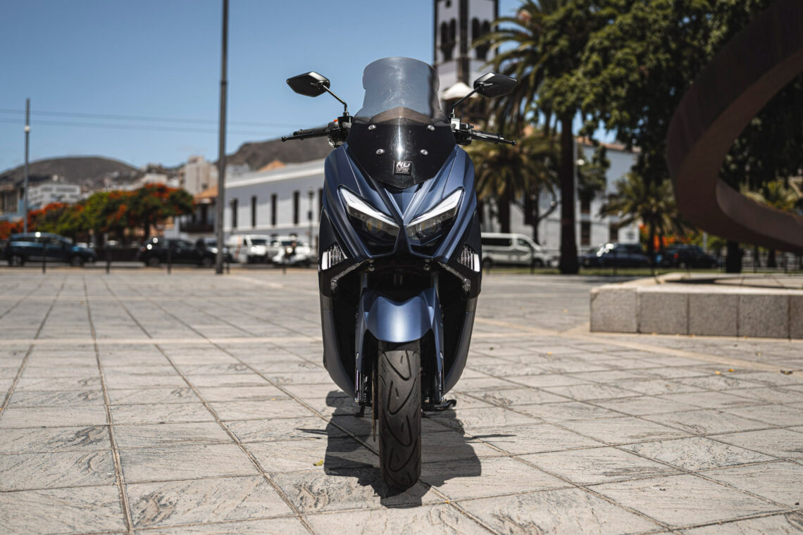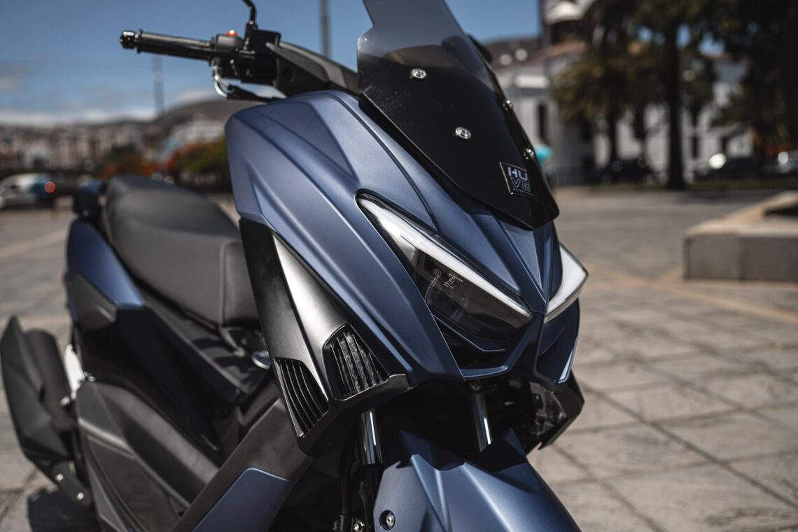 Para situarnos, este nuevo modelo tanto por estética como por dimensiones viene a recordarnos al segmento más urbano en el que campan con gran autoridad el Honda PCX y el Yamaha NMAX. Tiene una estética bastante atractiva y actual con tres acabados de color diferentes de buena calidad (Burdeos, Azul mate y Negro mate), con un parabrisas ahumado con cierta elevación para ofrecer protección aerodinámica. También llama la atención el doble faro LED frontal bastante intimidante o el vanguardista conjunto trasero, también en LED.