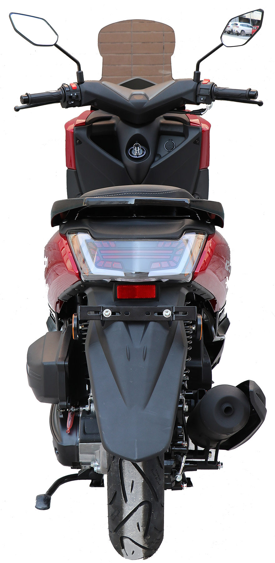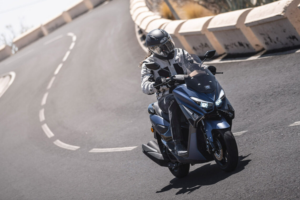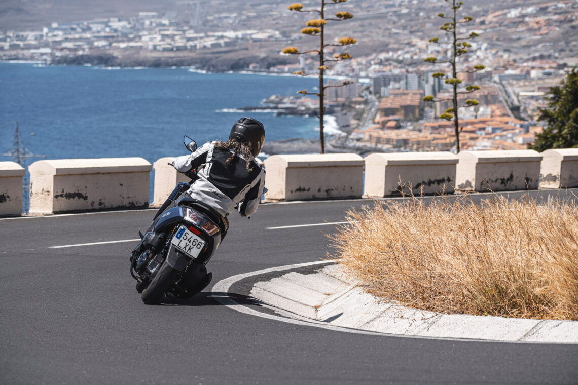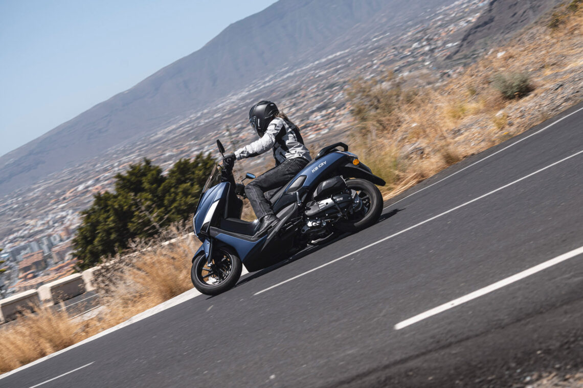 Para situarnos, este nuevo modelo tanto por estética como por dimensiones viene a recordarnos al segmento más urbano en el que campan con gran autoridad el Honda PCX y el Yamaha NMAX. Tiene una estética bastante atractiva y actual con tres acabados de color diferentes de buena calidad (Burdeos, Azul mate y Negro mate), con un parabrisas ahumado con cierta elevación para ofrecer protección aerodinámica. También llama la atención el doble faro LED frontal bastante intimidante o el vanguardista conjunto trasero, también en LED.