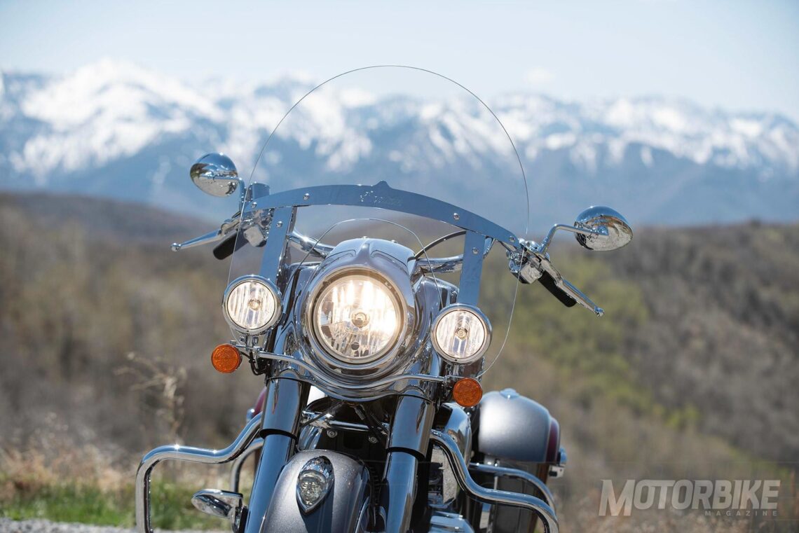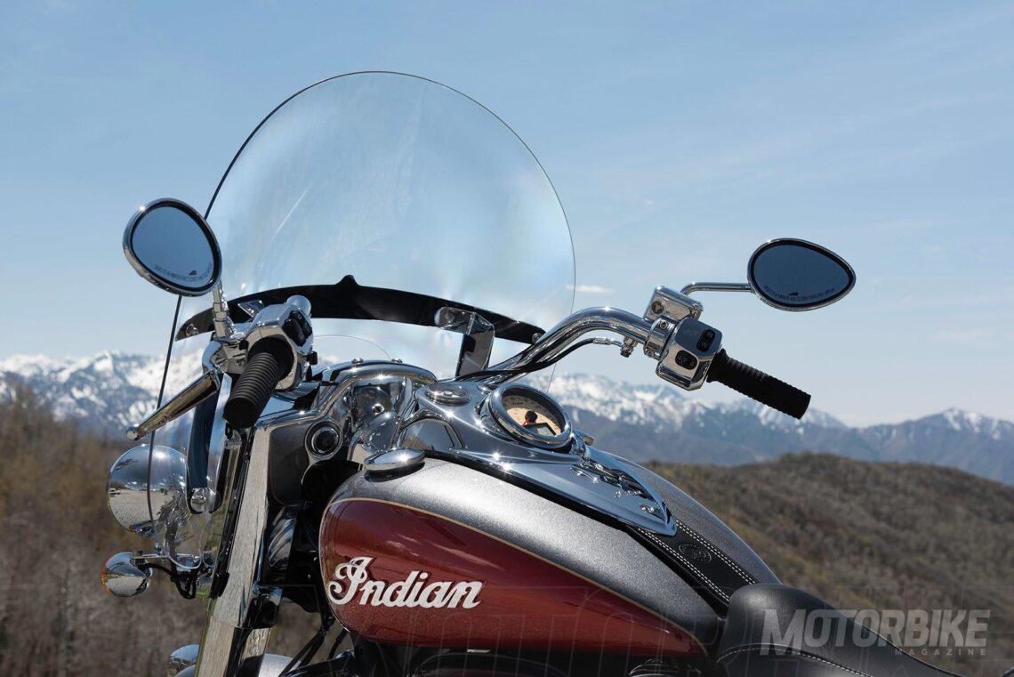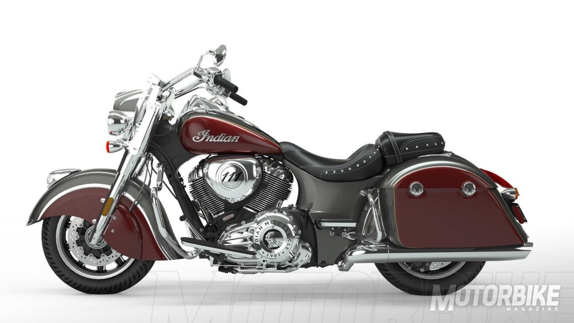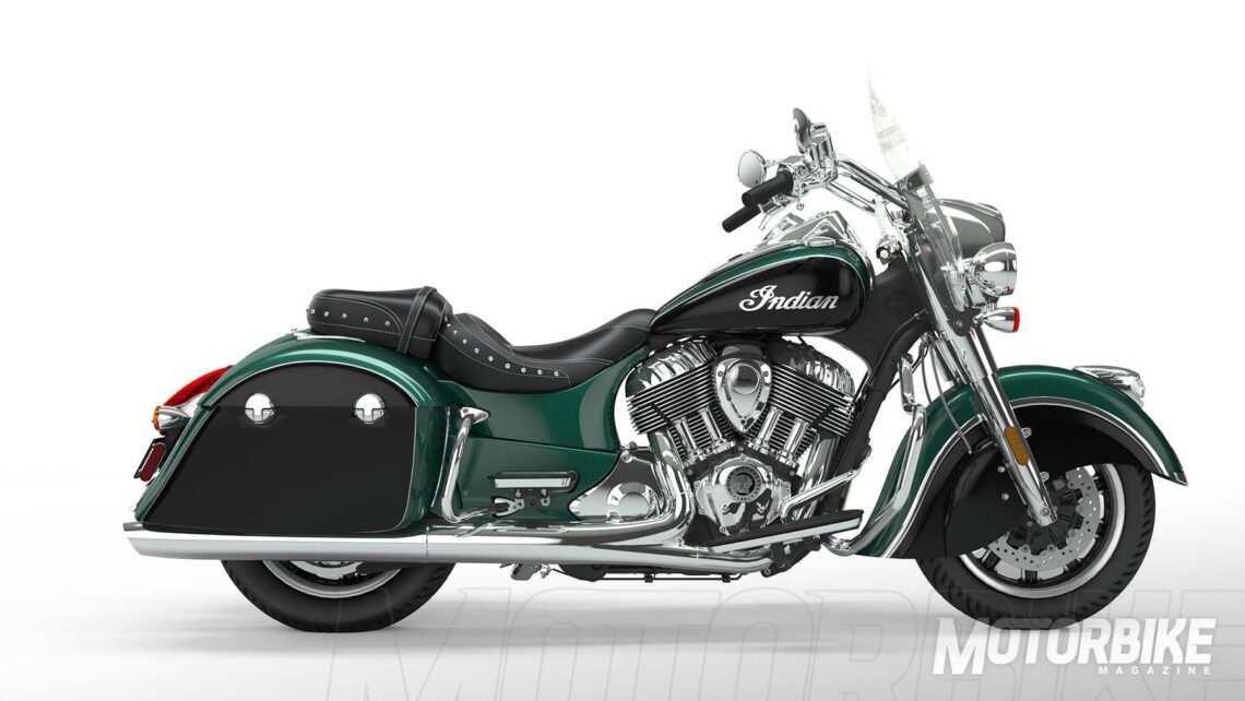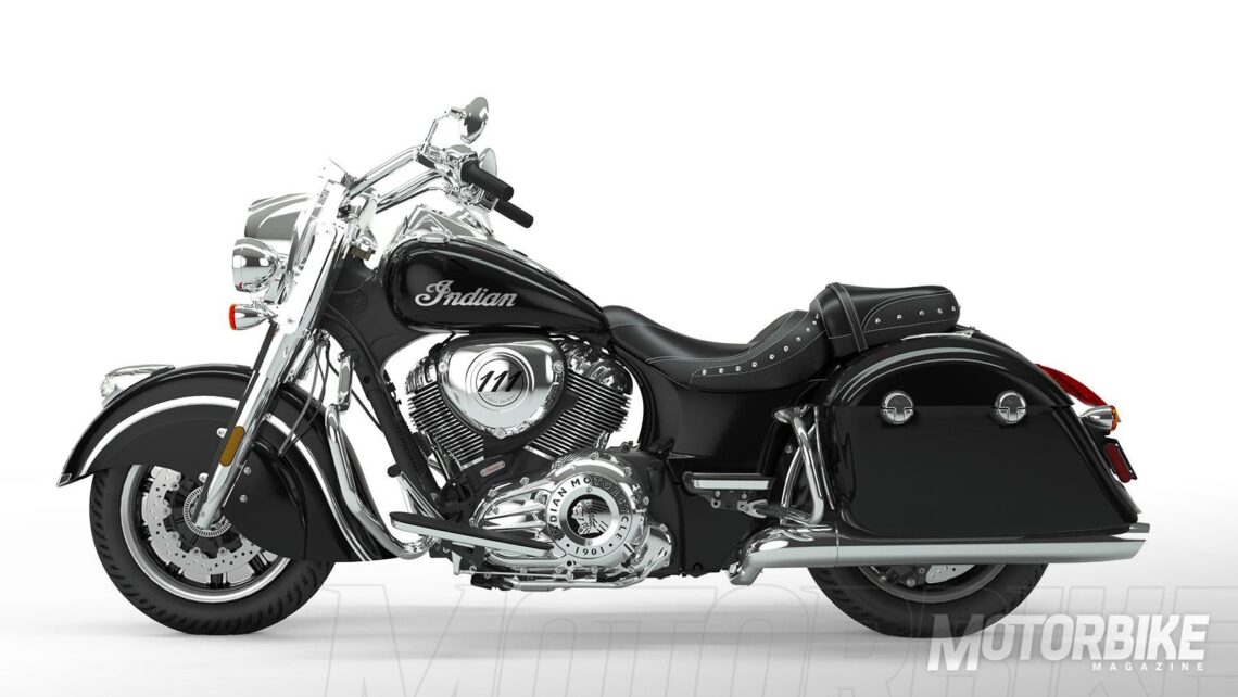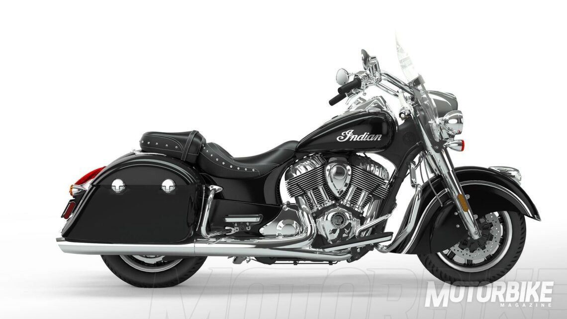 La Indian Springfield es una de las motos más puras y clásicas que tiene la marca en su catálogo. Este modelo mantiene detalles como el sistema de instalación fácil de la pantalla parabrisas, los asientos de cuero, los baúles laterales de cierre remoto o los reposapiés ajustables. Su estética clásica no está reñida con la tecnología, como el encendido sin llave, el control de crucero o el control de presión de los neumáticos, pero en 2019, la Indian Springfield añade modos de conducción y un interesante sistema de desactivación del cilindro trasero para disminuir el calor emitido del calor.