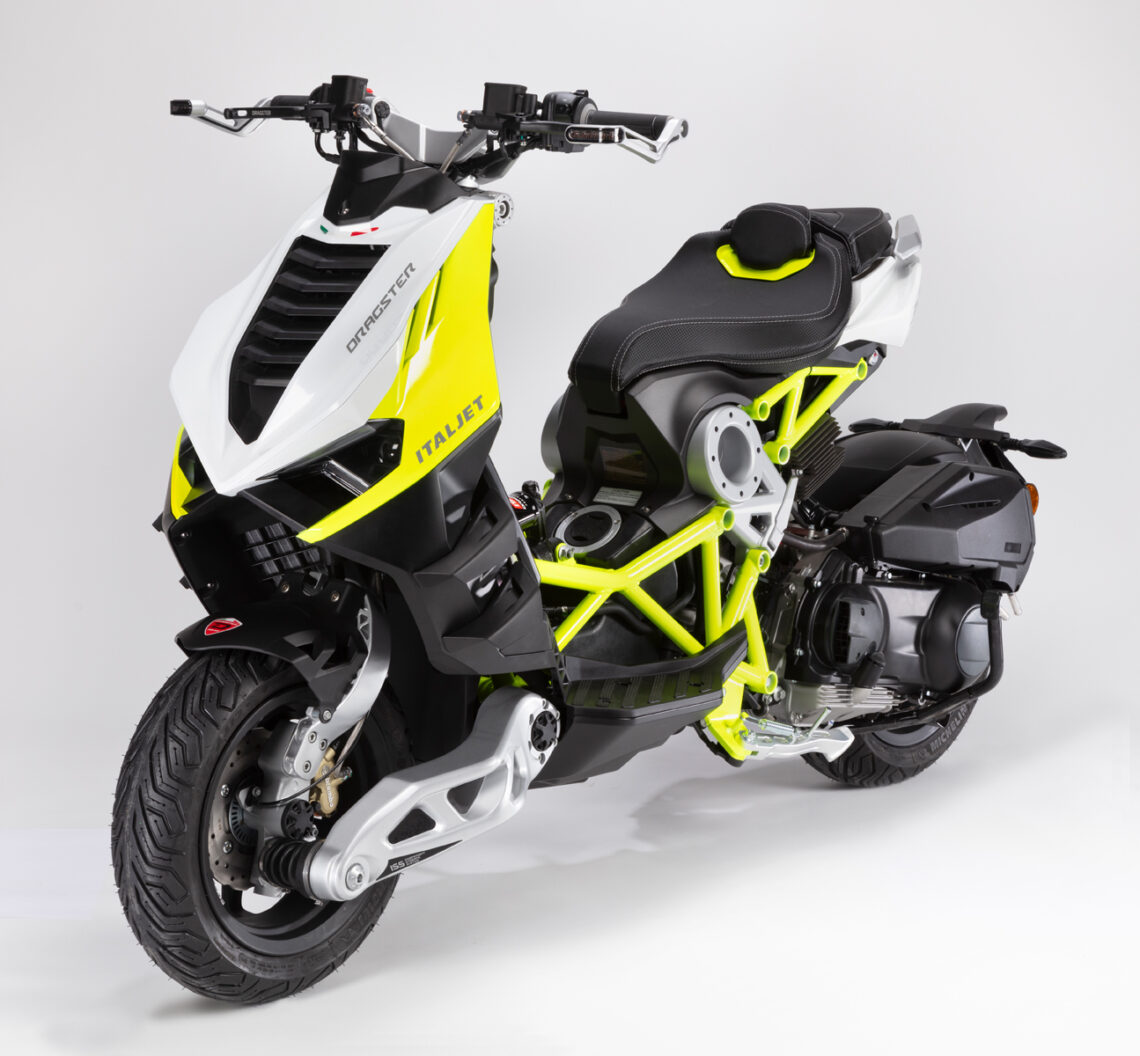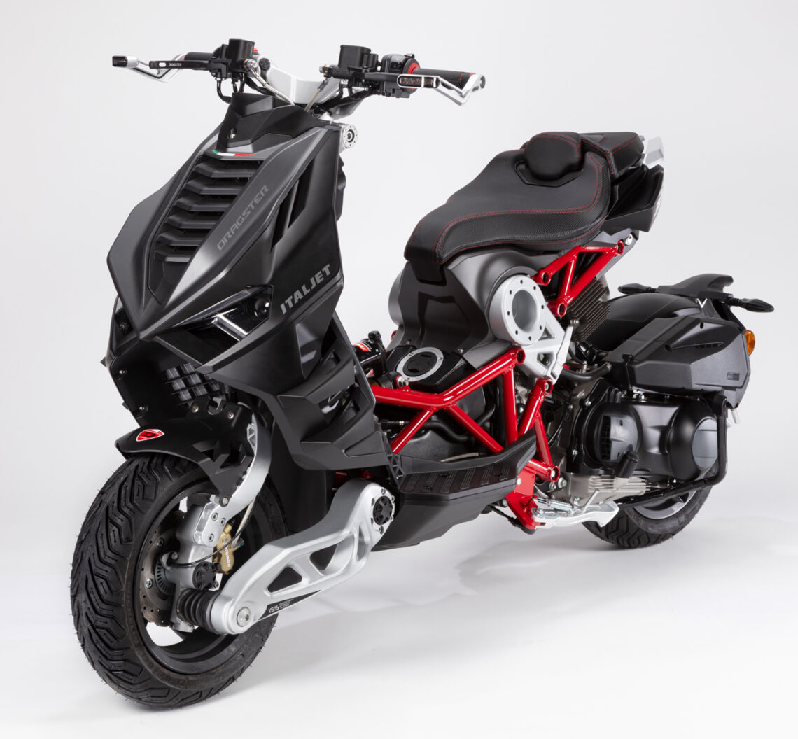 La familia de los Italjet Dragster crece con este 300, un scooter de media cilindrada con más potencia que sus hermanos menores y más deportiva si cabe. Al más puro estilo Italjet, el Dragster 300 hace una declaración audaz con características técnicas exclusivas.