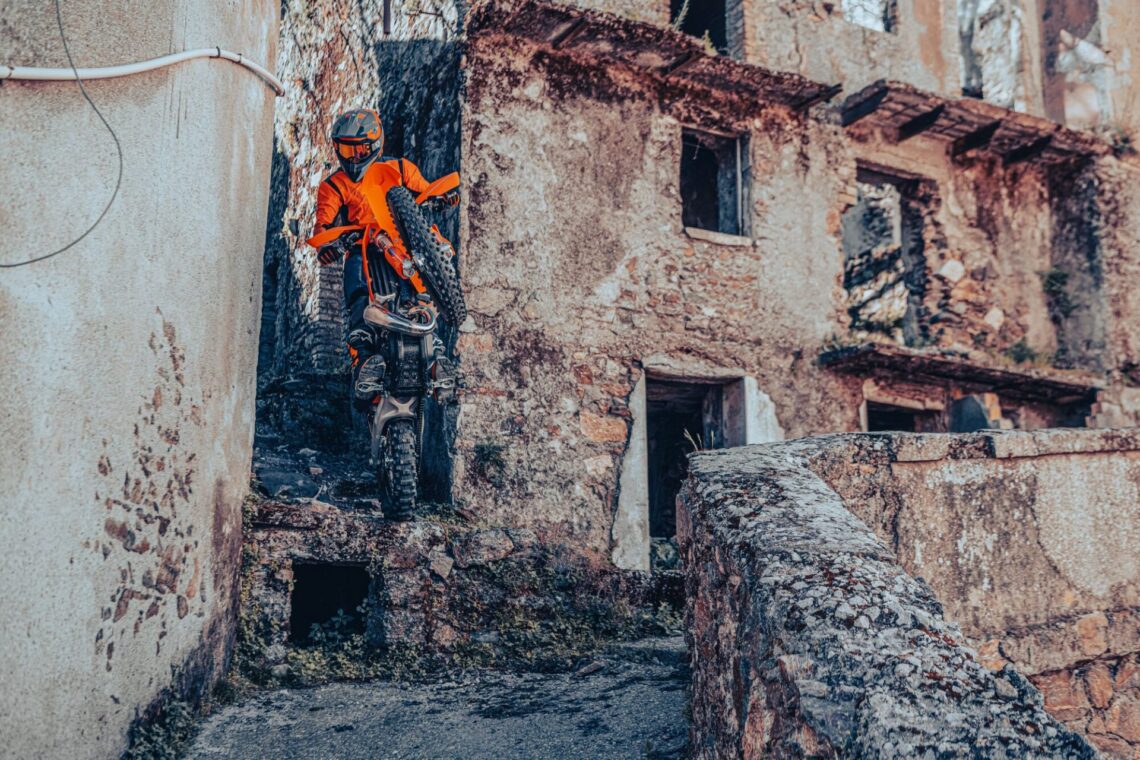 La ergonomía de las KTM EXC también se ha visto modificada, empezando por el triángulo y el mejor contacto de las rodillas, especialmente cuando se pilota de pie, con superficies de contacto en la carrocería. El asiento tiene un nuevo perfil plano, con una cubierta naranja de alto agarre y una hendidura bajo el asiento, justo encima del airbox, para levantar la moto con mayor facilidad, algo que también le da su toque en términos de diseño y de carácter general. El guardabarros delantero es nuevo, con mejores resultados de protección ante la suciedad para el piloto y los radiadores.