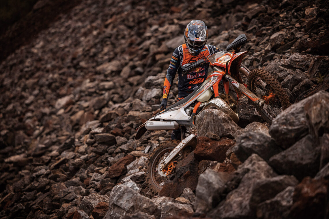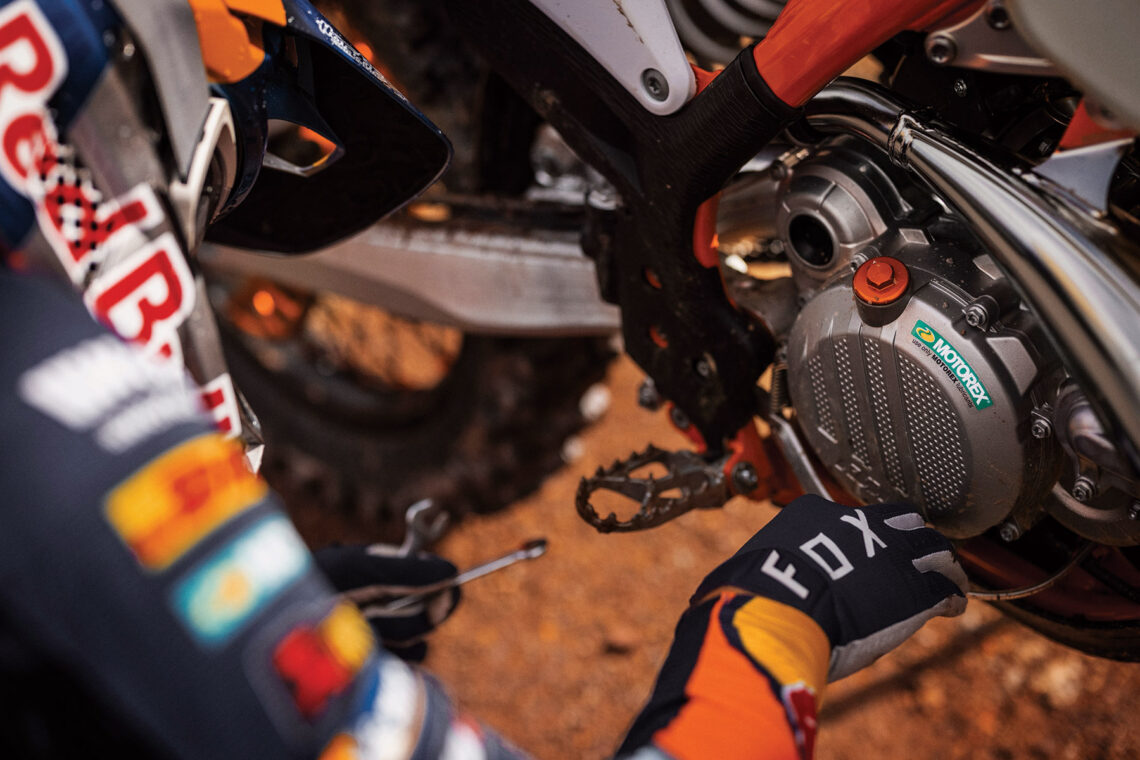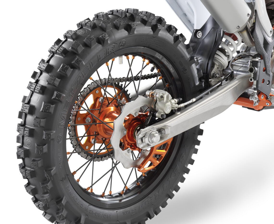 La KTM 300 EXC Erzbergrodeo 2022 también trae de serie otros accesorios como llantas Factory con bujes anodizados en color naranja, correas de agarre específicas de enduro, ventilador del radiador, interruptor de cambio de mapa, pletinas de dirección mecanizadas, un asiento Factory de mayor agarre y un revestimiento especial del chasis en color naranja para aumentar aún más su atractivo estético.