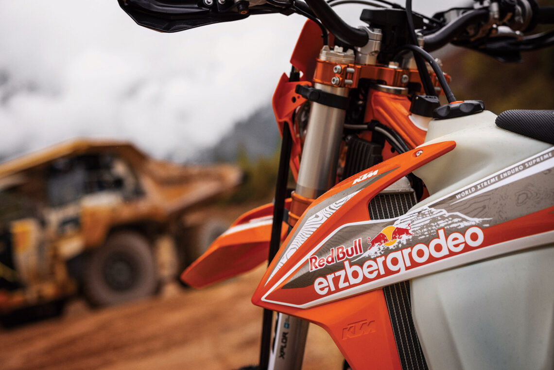 La marca austriaca ha decidido continuar con la KTM 300 EXC TPI Erzbergrodeo en 2022, una edición especial que pretende homenajear y toma el nombre de la mítica carrera de enduro extremo. Se basa en la KTM 300 EXC TPI 2022 y todas sus mejoras, pero cuenta de serie con todo un arsenal de piezas desarrolladas para la competición. Además, cuenta con una decoración especial dedicada a la Red Bull Erzbergrodeo.