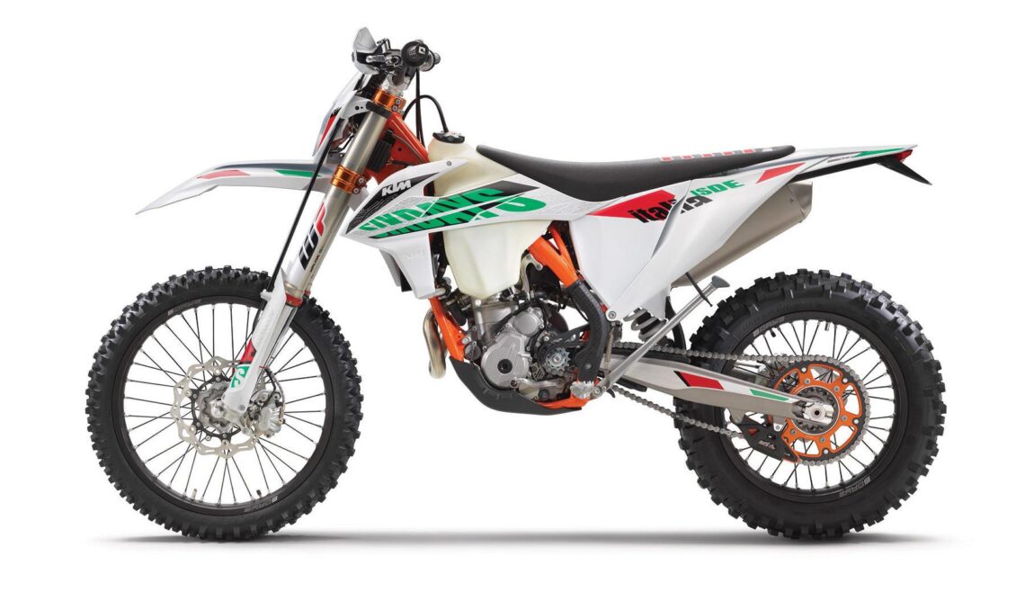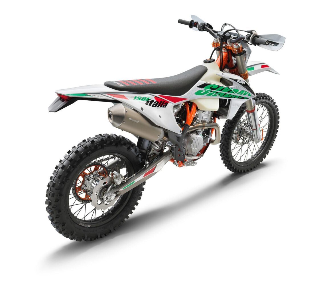 Se basa en la KTM 350 EXC-F estándar, pero la KTM 350 EXC-F Six Days añade una serie de accesorios PowerParts de serie que la hacen más capaz y lujosa. Además, luce una decoración conmemorando los ISDE que se celebran en Italia.