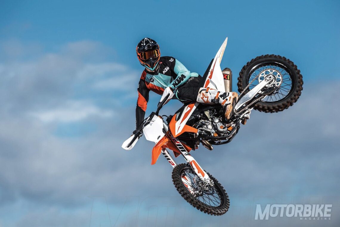 En el caso de la KTM 350 SX-F, ha recibido un nuevo embrague DS, nueva transmisión, nuevo sistema Keihin de gestión de motor con cuerpo de inyección rediseñado y una electrónica más afinada, en la que hay que destacar el interruptor de selección de mapa con efecto en el control de tracción, control de salida y selección de mapa alternativo.