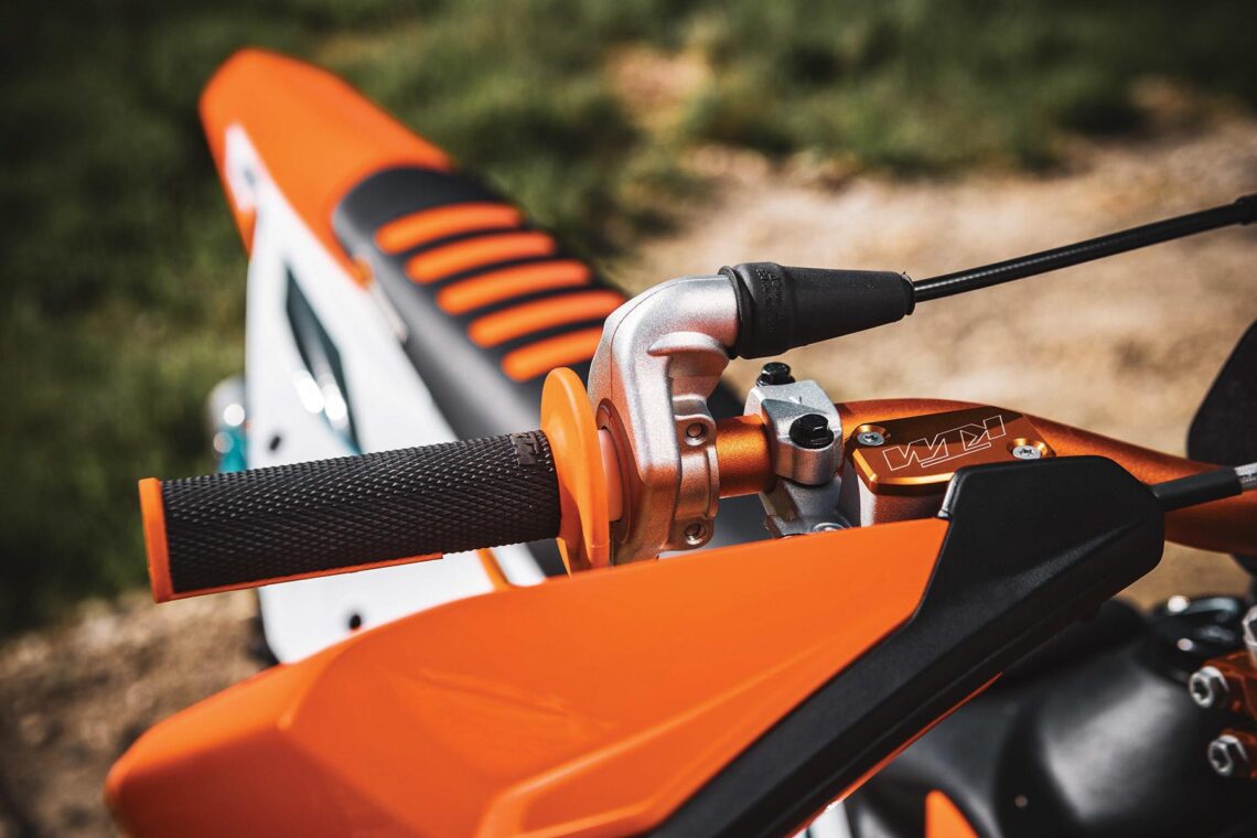 Lo más llamativo de la KTM 350 SX-F 2021 y el resto de modelos 4T está en el sistema de conectividad. Gracias a la nueva app myKTM y la unidad de conectividad que acoplas en el manillar, puedes realizar ajustes rápidos e instantáneos de tu moto desde el teléfono móvil.
