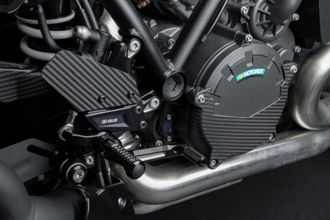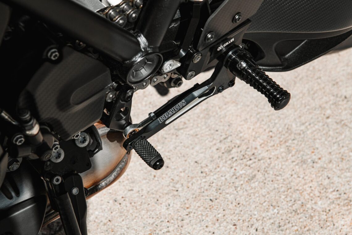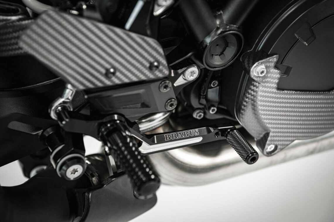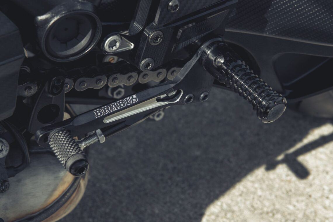 Hay que mencionar otros componentes como las estriberas ajustables individualmente y las manetas de embrague y freno regulables que elevan las posibilidades de la Brabus 1300 R Masterpiece Edition.