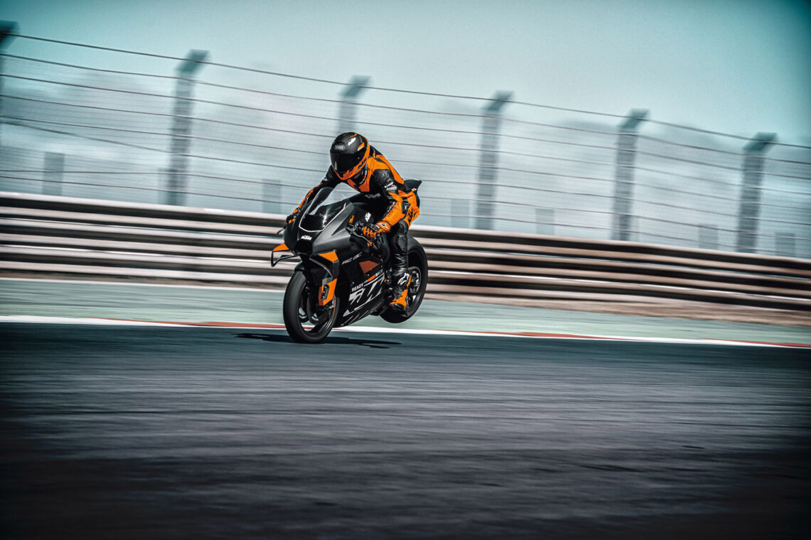 Y ojo con la nueva imagen de la moto, un color negro amenazante e impresionante que lucirán las únicas 200 unidades fabricadas de la KTM RC 8C 2023, que traerán una placa con su número de serie en la pletina de dirección.