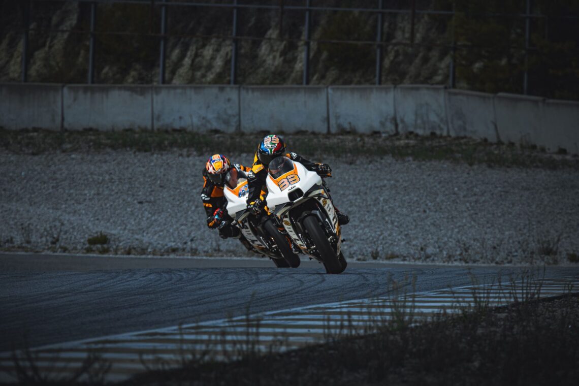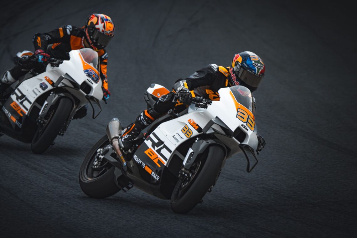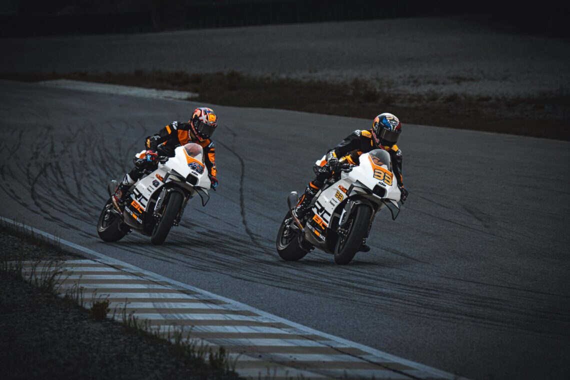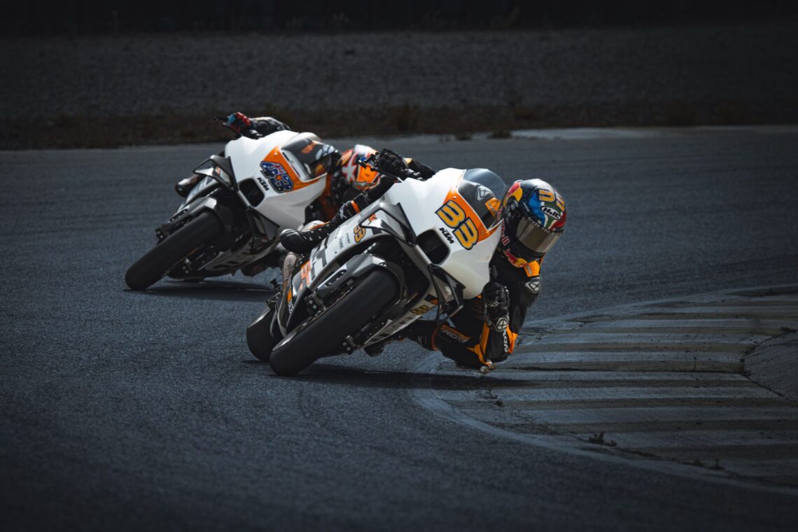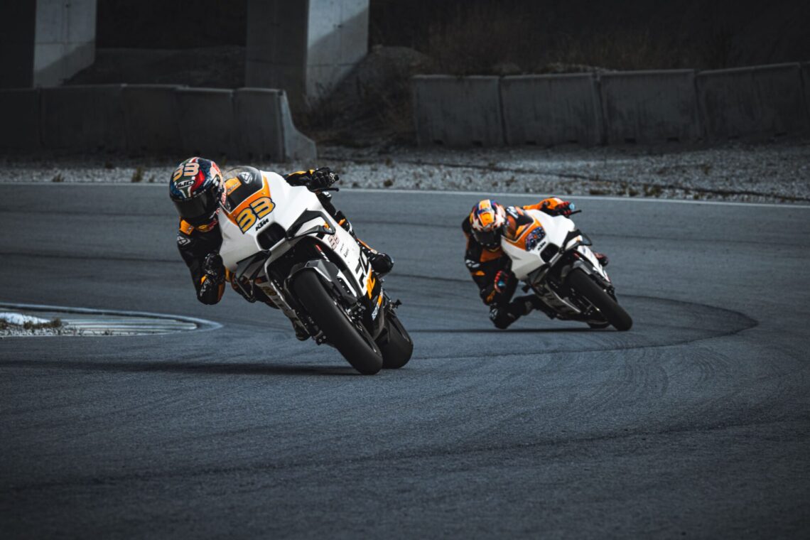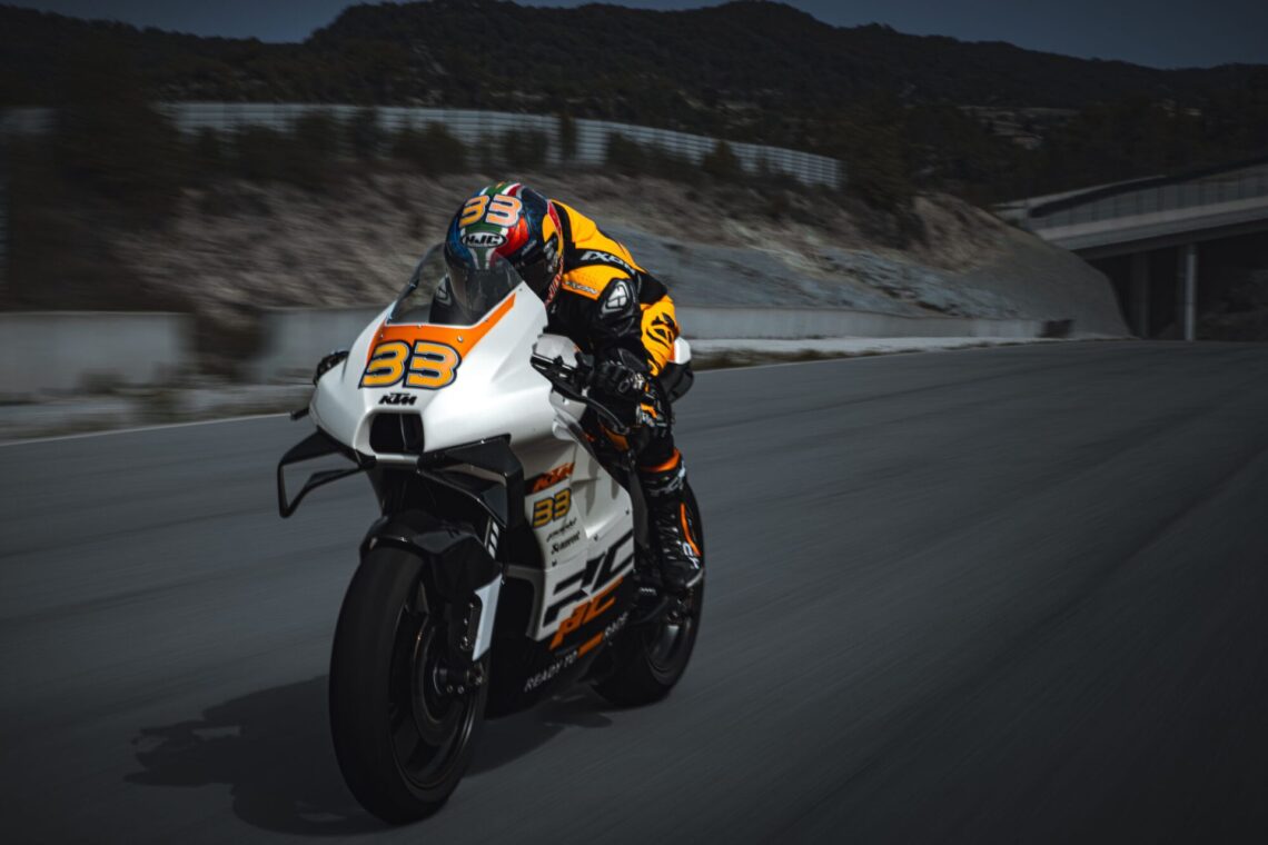 La carrocería está hecha en carbono kevlar, con un diseño que se inspira en la KTM RC16 de MotoGP. Confía en el motor LC8c bicilíndrico en paralelo de 889 cc, doble árbol de levas, 8 válvulas y con un rendimiento de 130 cv de potencia y 98 Nm de par. Componentes como el filtro de aire y su caja del filtro son específicos de competición. Con un peso en seco de 142 kg, estamos cerca de una relación potencia-peso 1:1.