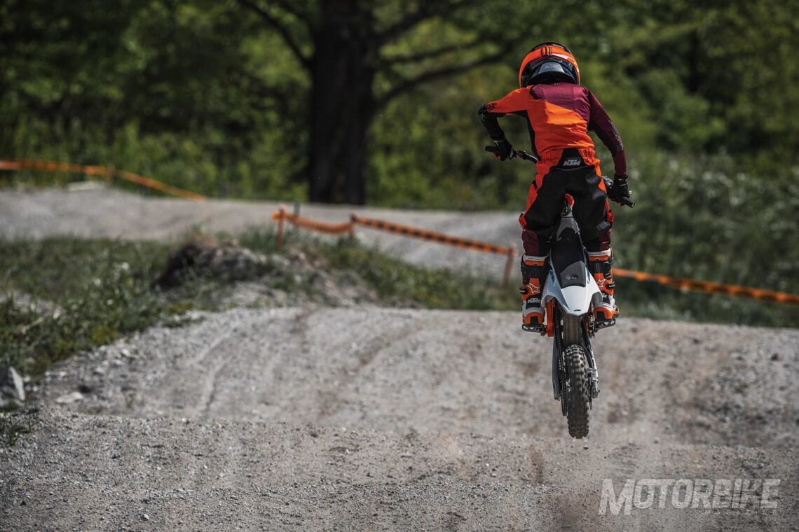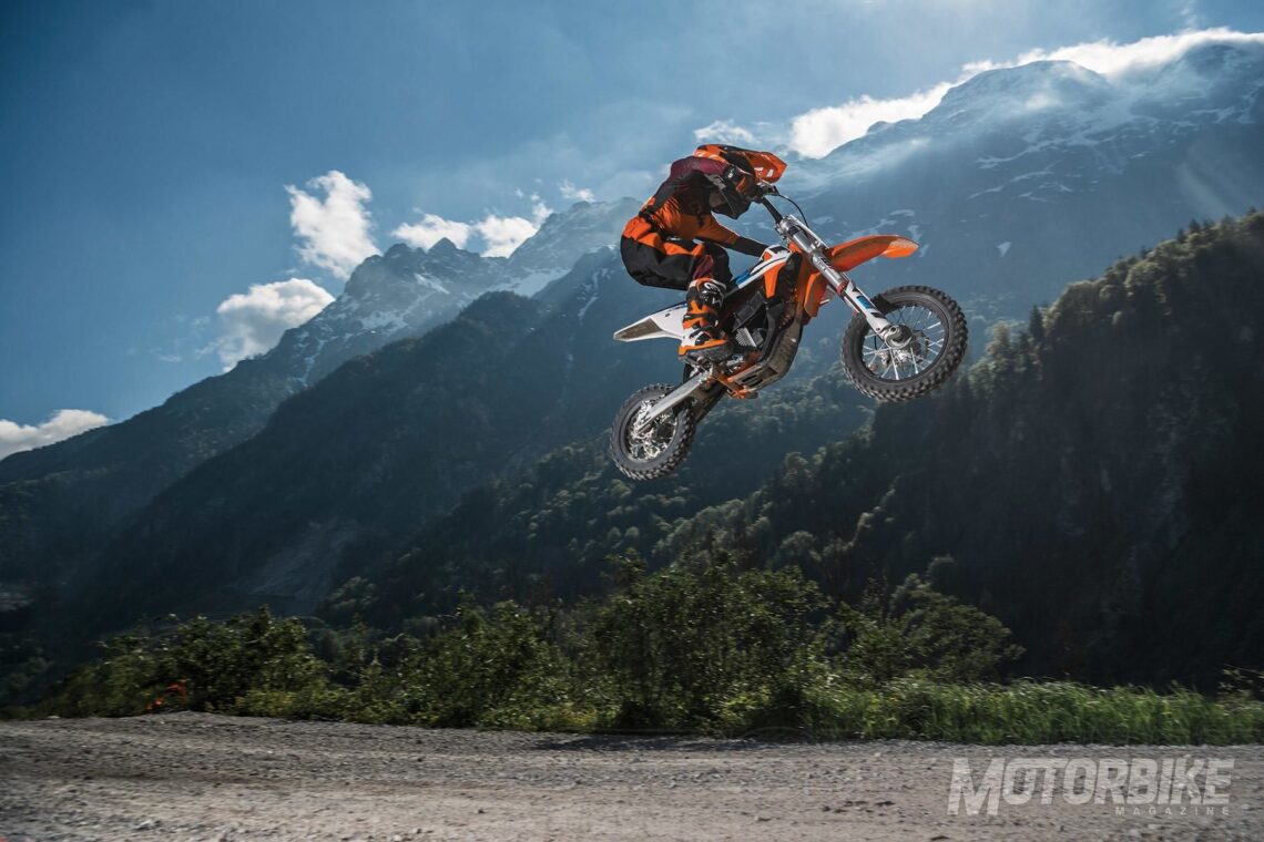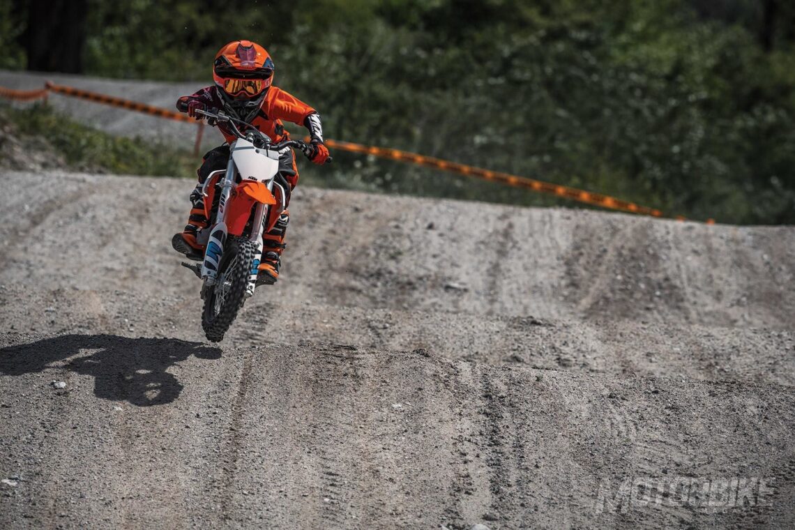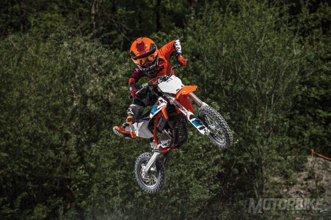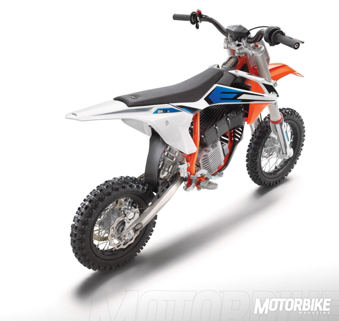 La marca austriaca ha aprovechado su experiencia en vehículos eléctricos adquirida durante los últimos 10 años con el desarrollo de la KTM SX-E 5. El resultado es una moto eléctrica infantil con una potencia equiparable a la KTM SX 50, pero con un mínimo mantenimiento (engrase de la cadena) y emisiones sonoras. Esta minimoto está dotada de seis modos de potencia para que sirva tanto a un principiante como a un piloto más experimentado de motocross infantil. La parte ciclo es de primera calidad y es totalmente ajustable en altura (incluso con un kit PowerParts extra de suspensiones rebajadas) y está dirigida a niños de entre 3 y 10 años de edad. La moto crece a la vez que el piloto.