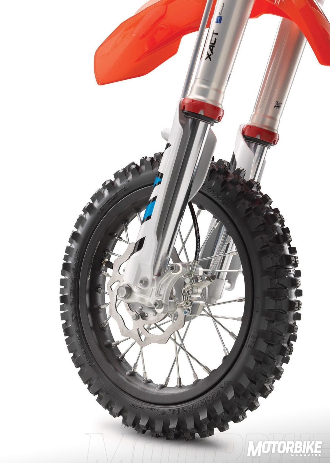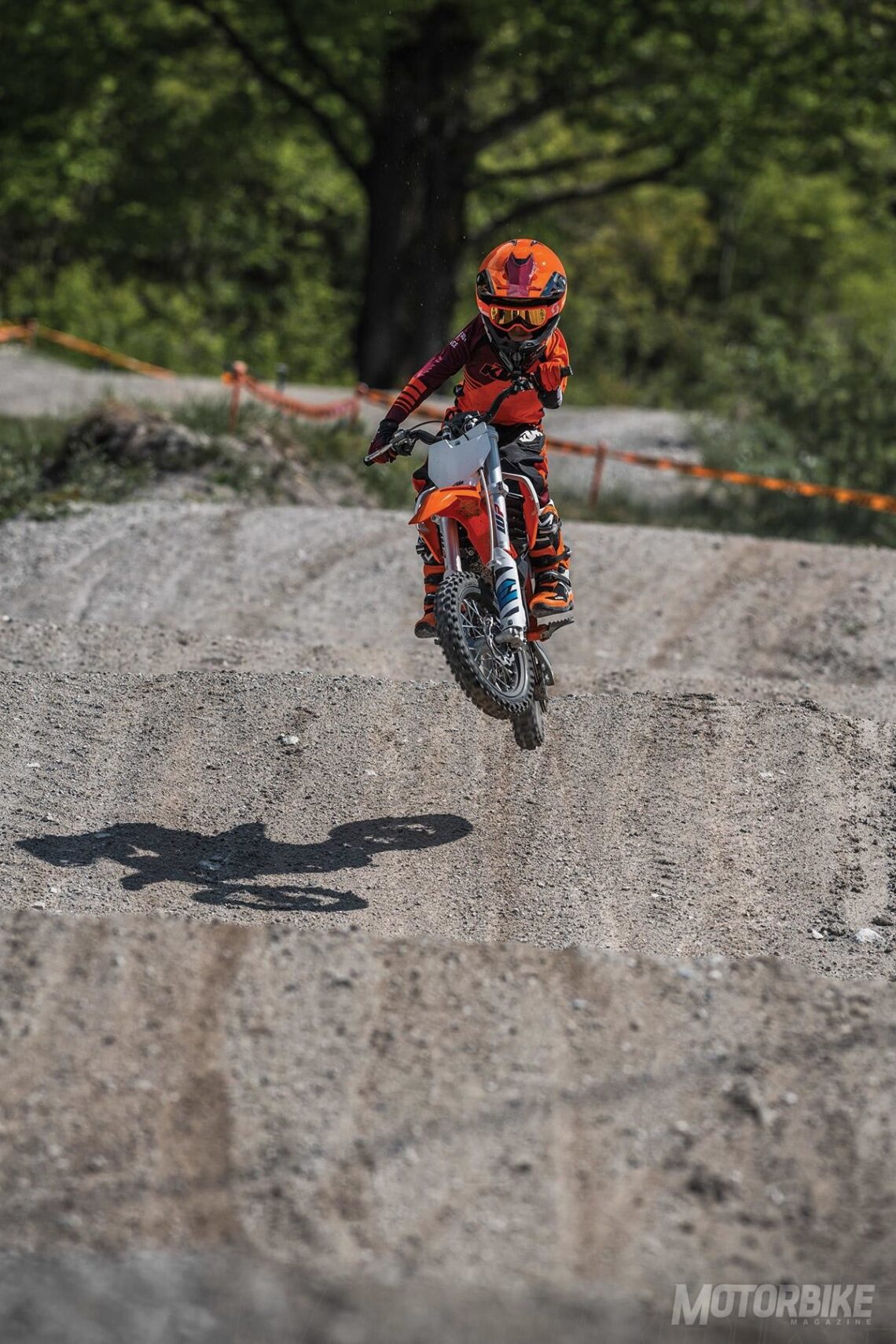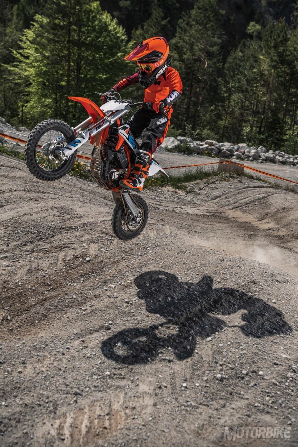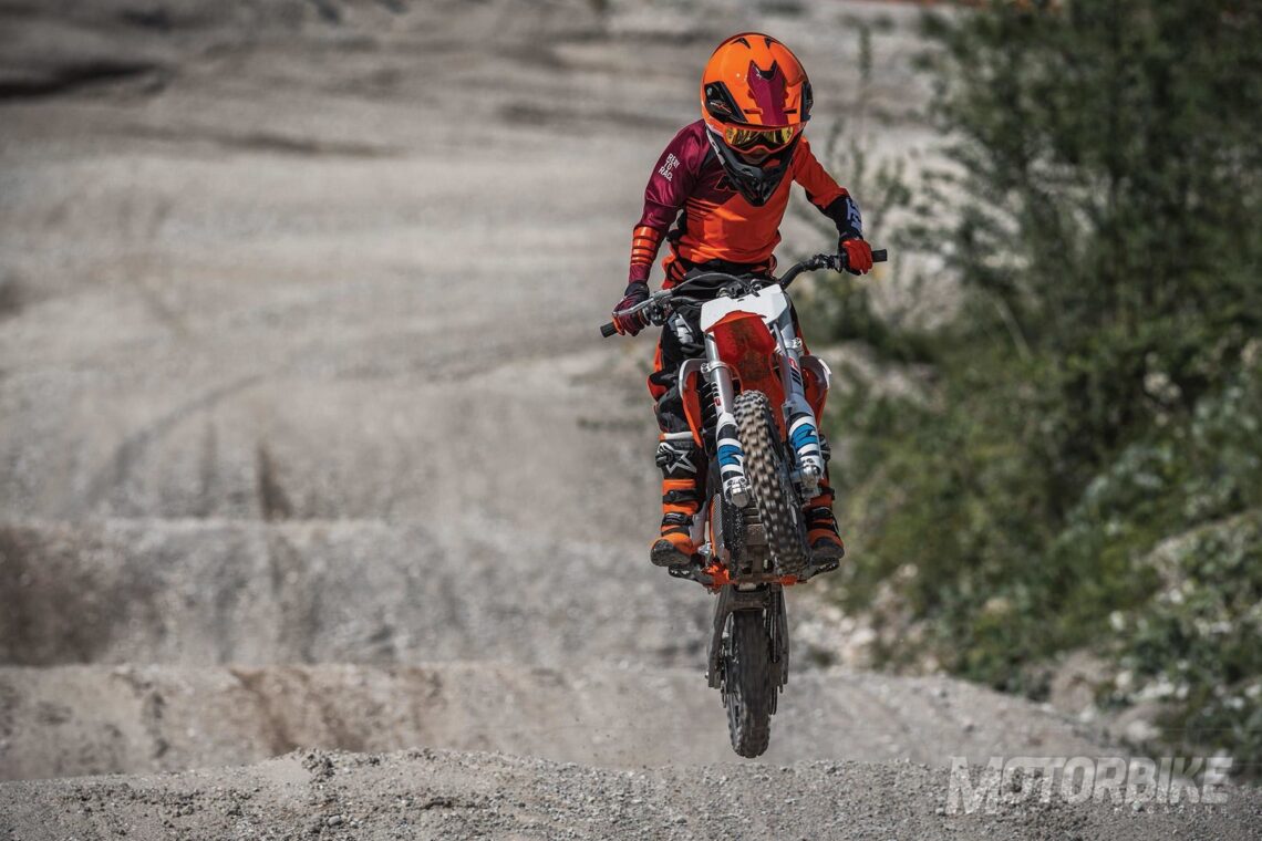 La marca austriaca ha aprovechado su experiencia en vehículos eléctricos adquirida durante los últimos 10 años con el desarrollo de la KTM SX-E 5. El resultado es una moto eléctrica infantil con una potencia equiparable a la KTM SX 50, pero con un mínimo mantenimiento (engrase de la cadena) y emisiones sonoras. Esta minimoto está dotada de seis modos de potencia para que sirva tanto a un principiante como a un piloto más experimentado de motocross infantil. La parte ciclo es de primera calidad y es totalmente ajustable en altura (incluso con un kit PowerParts extra de suspensiones rebajadas) y está dirigida a niños de entre 3 y 10 años de edad. La moto crece a la vez que el piloto.