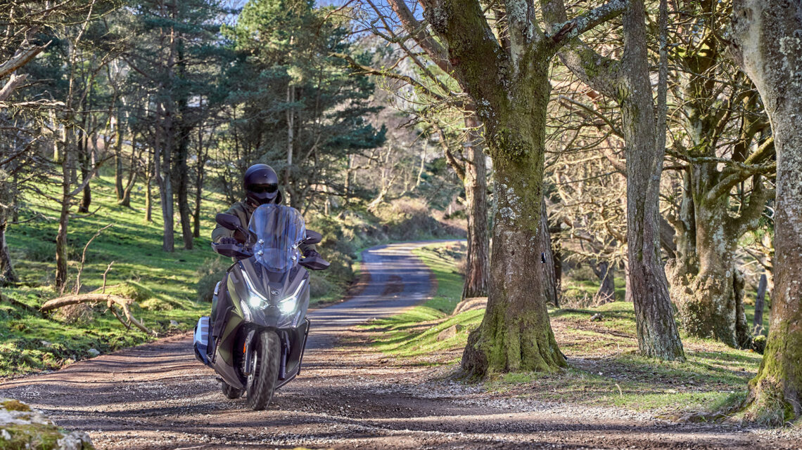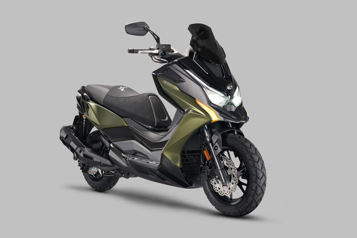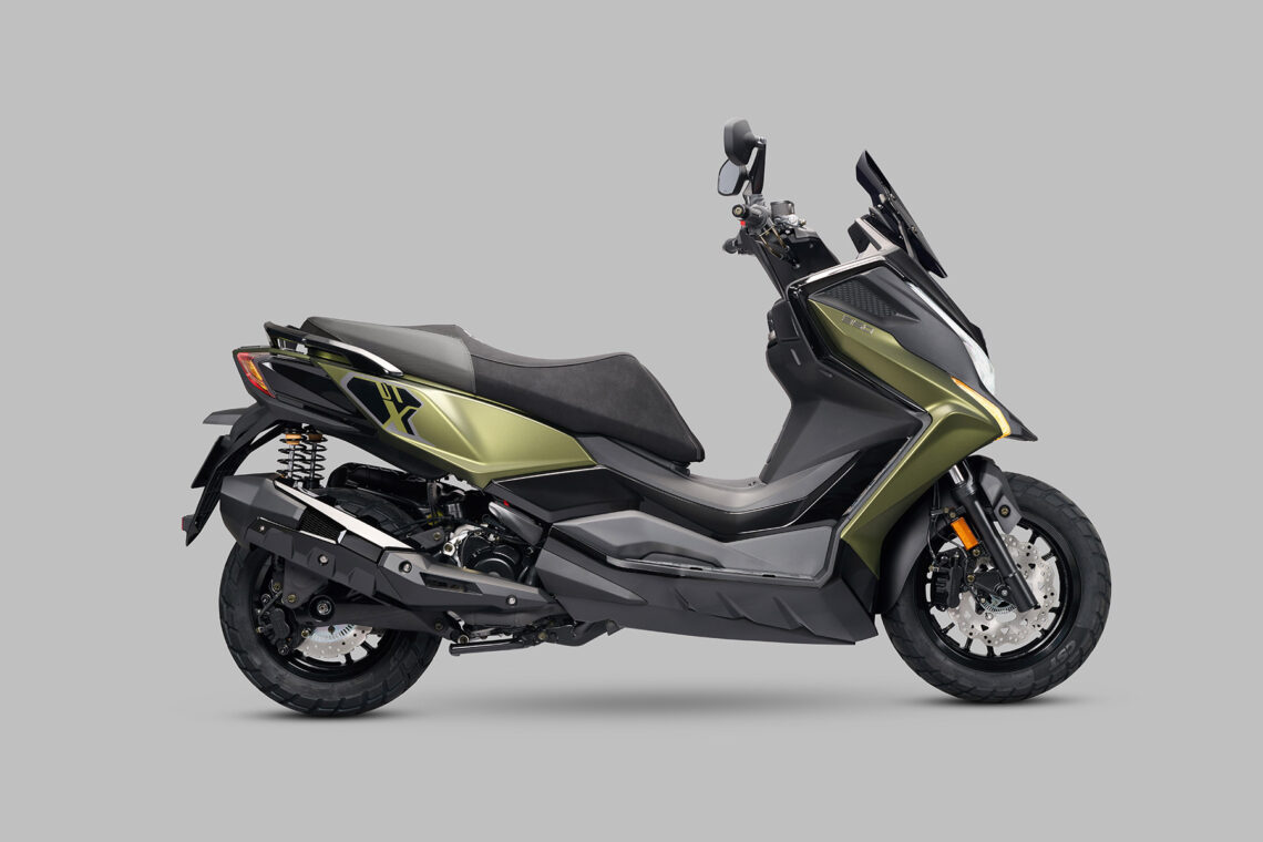 El KYMCO DTX 350 2025 llega en dos decoraciones: verde oscuro satinado y negro mate.