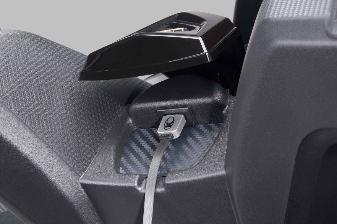 En esta evolución se ha aprovechado para hacer retoques en el campo del confort. En lo primero que lo vamos a notar es en el nuevo asiento, con una comodidad superior tanto para el conductor como para el pasajero. La forma y el espumado son distintos y mejoran la amortiguación y el reparto de pesos. El nombre del modelo aparece bordado sobre el nuevo tapizado, todo un toque de distinción. Estos cambios no afectan a que bajo el asiento sigue albergando espacio para dos cascos integrales.