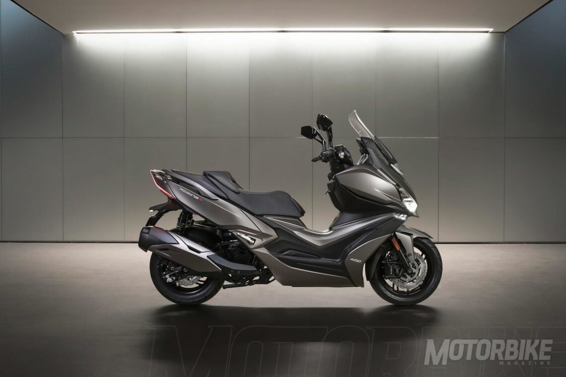 El KYMCO Xciting S 400 es un nuevo modelo que llega como la cuarta evolución de esta saga. Sorprende por ser el scooter 400 más potente, con un monocilíndrico de 400 cc que rinde 35,53 cv de potencia (compatible con el carnet A2) y 38,4 Nm de par máximo, a lo que hay que añadir además el mejor ratio de peso/potencia (5,3 kg/cv).