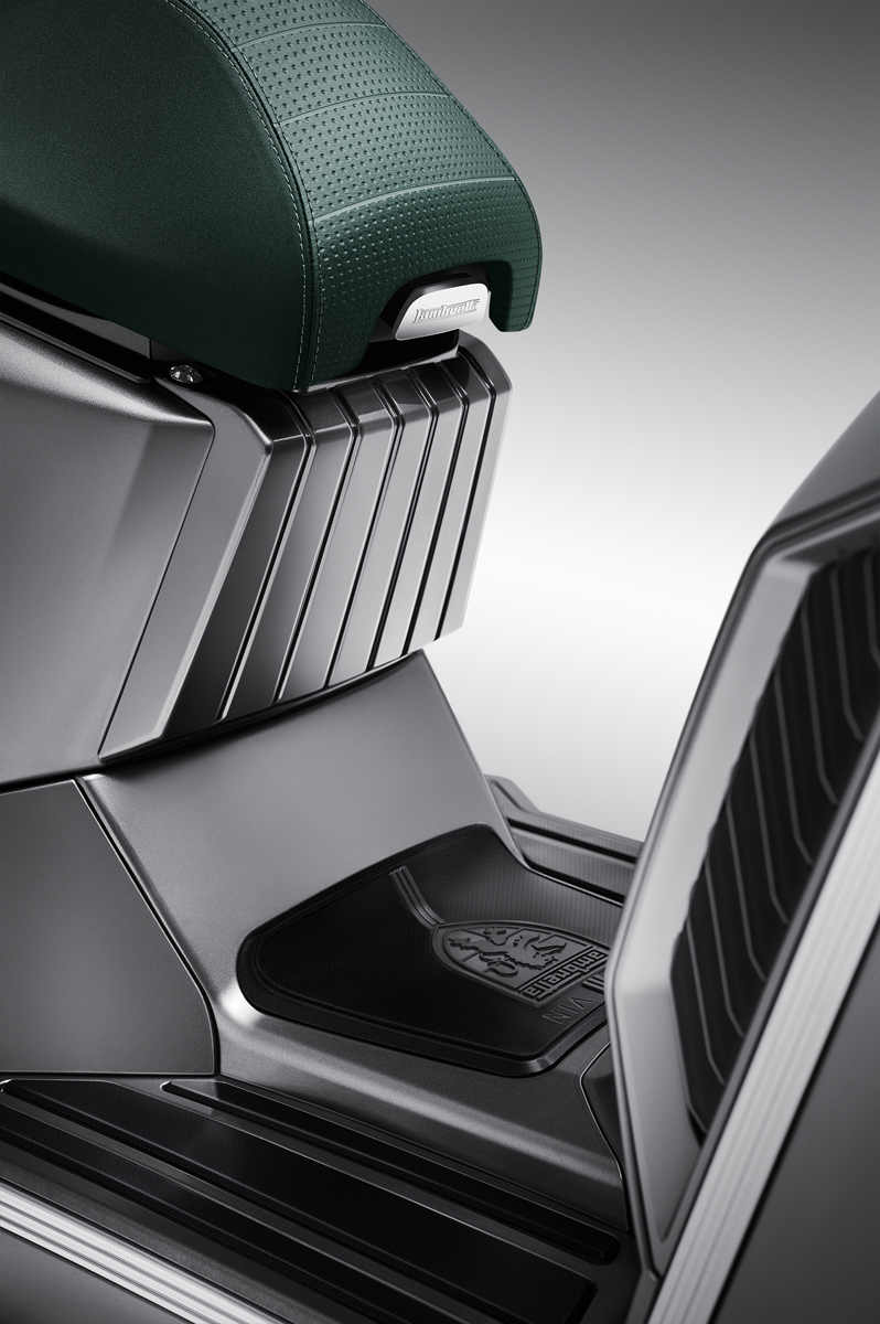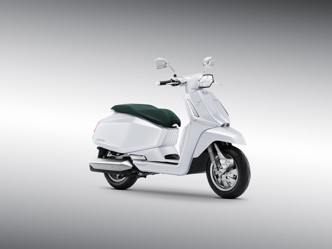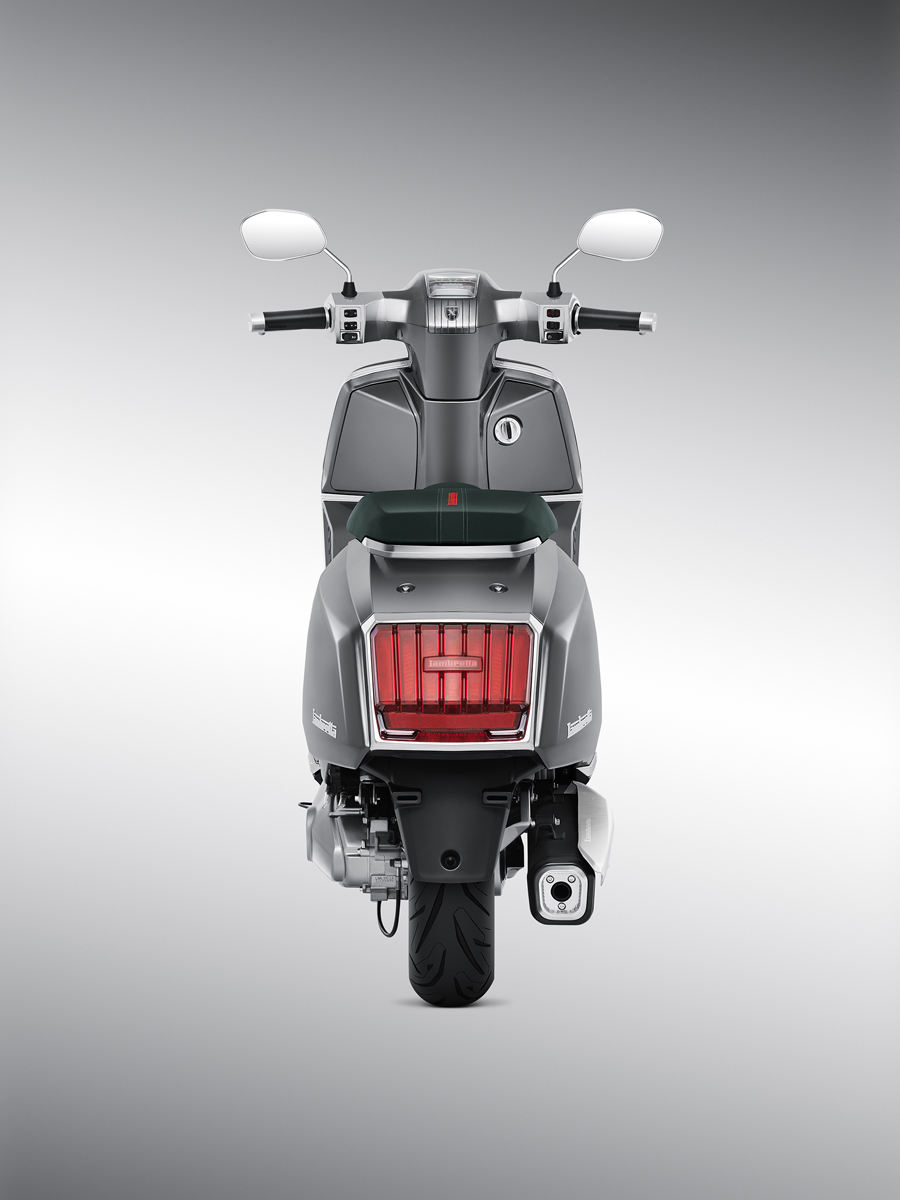 Diseñado por Walter Scheffrahn, presidente de Lambretta, presenta unas líneas deportivas y afiladas que recuerdan a los rasgos estilísticos típicos de las legendarias scooters de la marca. Presenta un innovador trazo, carcasas de acero, líneas de ‘diamante’ y guardabarros fijo, una de las peculiaridades más míticas de la firma.