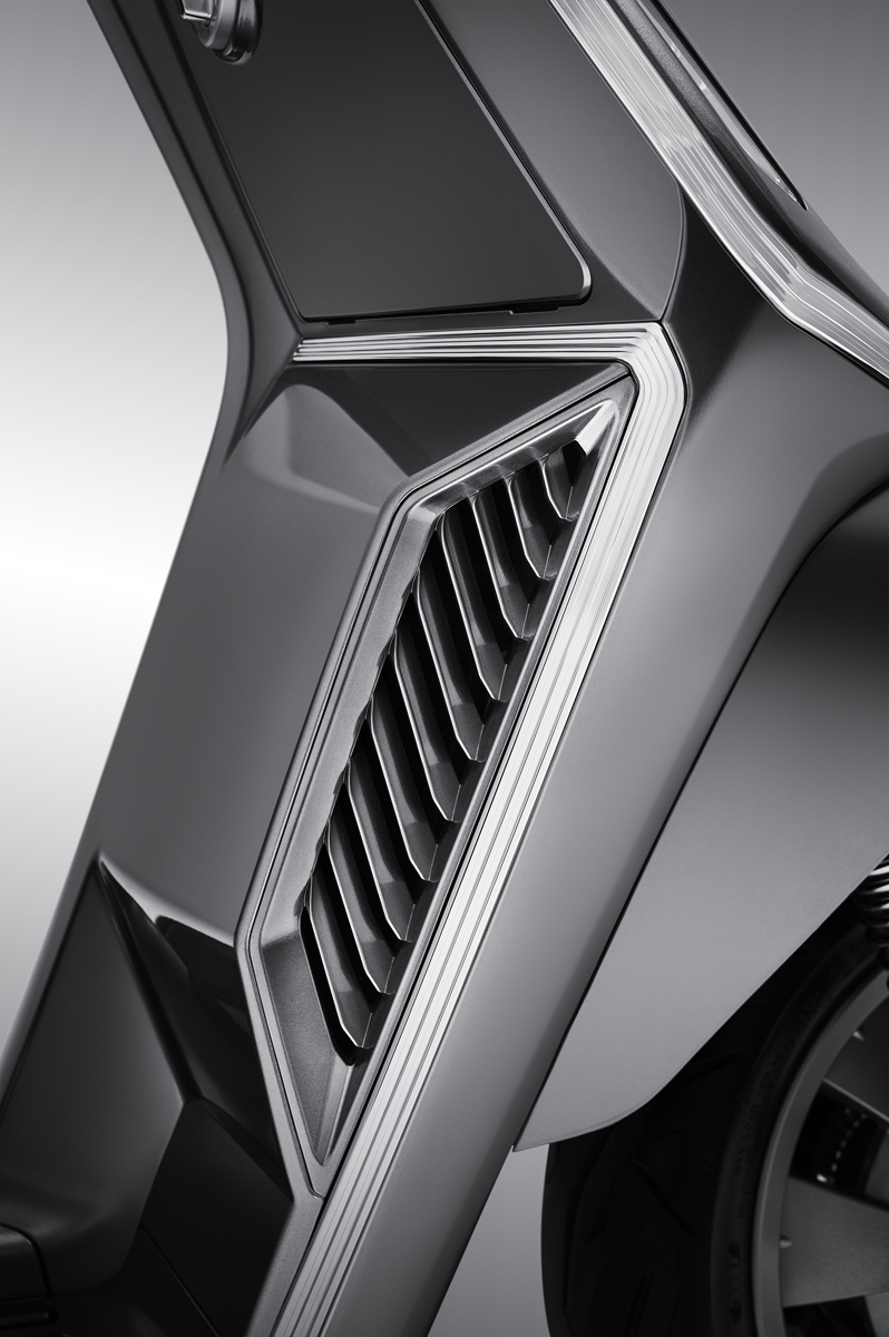 Cuenta con una suspensión delantera clásica de brazo oscilante y amortiguador doble con freno de disco de 220 mm. Las llantas de 12 pulgadas presentan un disco de 220 mm en la parte delantera y otro del mismo diámetro en la trasera, además del ABS de doble canal. También cuenta con faros LED que envuelven todo el scooter, un sistema de arranque sin llave e inyección electrónica de la reconocida marca Bosch. El depósito tiene una capacidad de 7 litros.