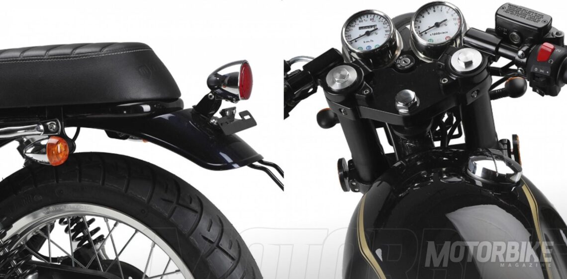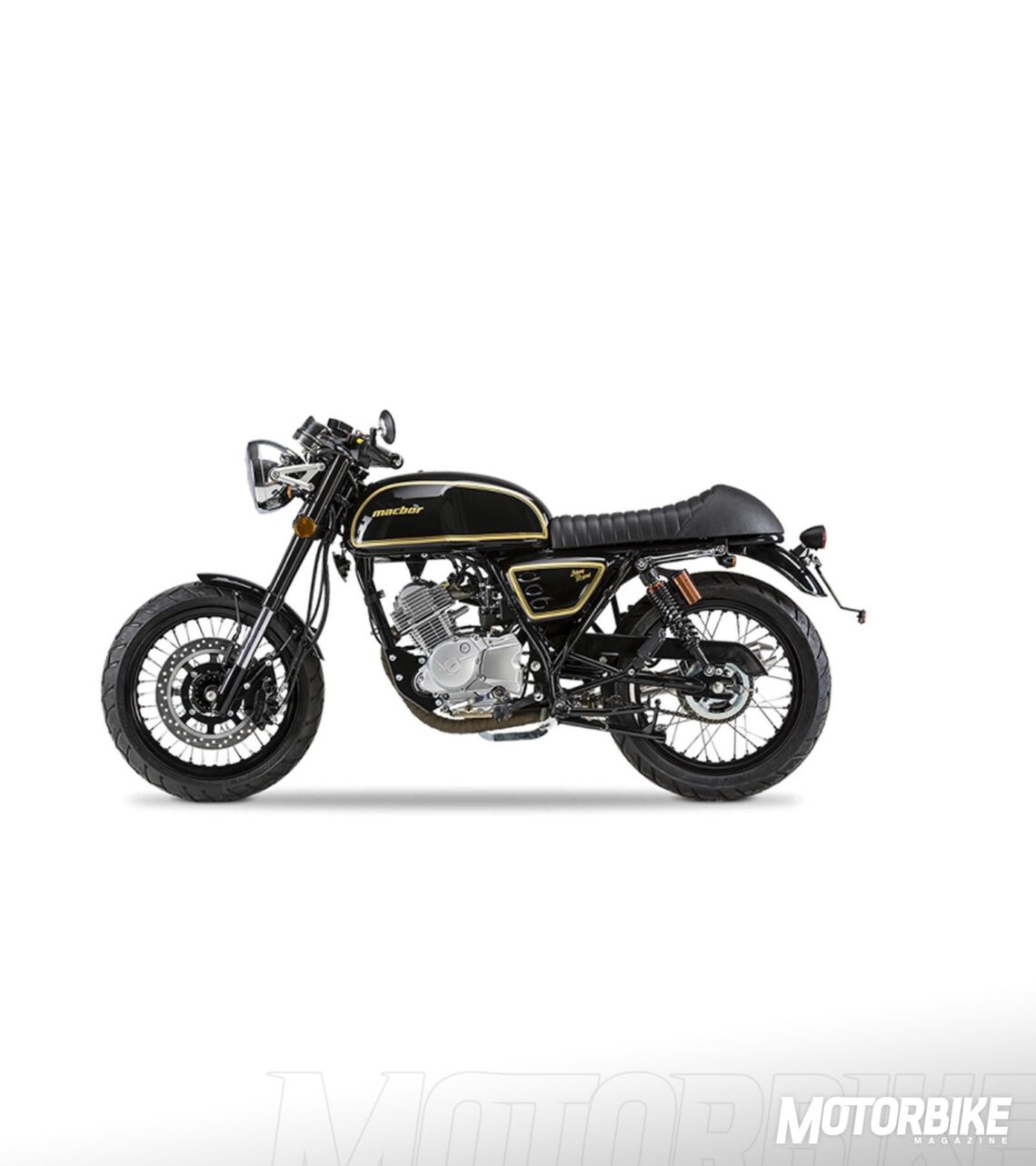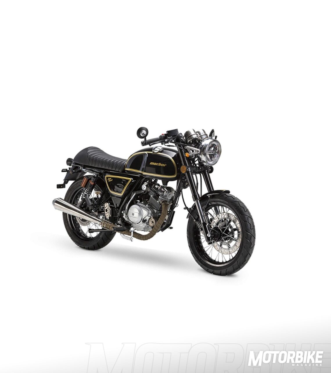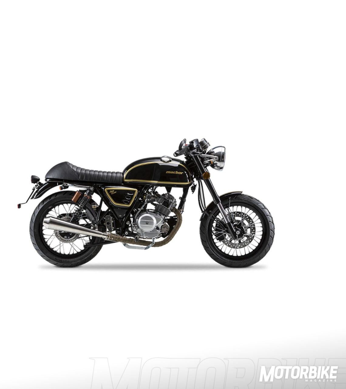 La Macbor Johnny Be Good es una nueva moto 125 de estilo retro que toma el nombre de la mítica canción de Chuck Berry, una clara cafe-racer 125 inspirada en aquellos modelos modificados de los años cincuenta. Su elegante decoración en negro y dorado viene aderezada además con horquilla invertida, amortiguadores traseros de gas con depósito de aceite separado, neumáticos deportivos e iluminación Full LED. Aunque lo más genuino de este modelo no puede ser otra cosa que los semi-manillares que obligan a su conductor a tener una actitud más agresiva. De la Macbor Johnny Be Good 125 hay que destacar también el buen trabajo de acabados del asiento, el consumo (1,9 l / 100 km), su depósito de 14,5 litros (autonomía de récord) y un precio muy atractivo.