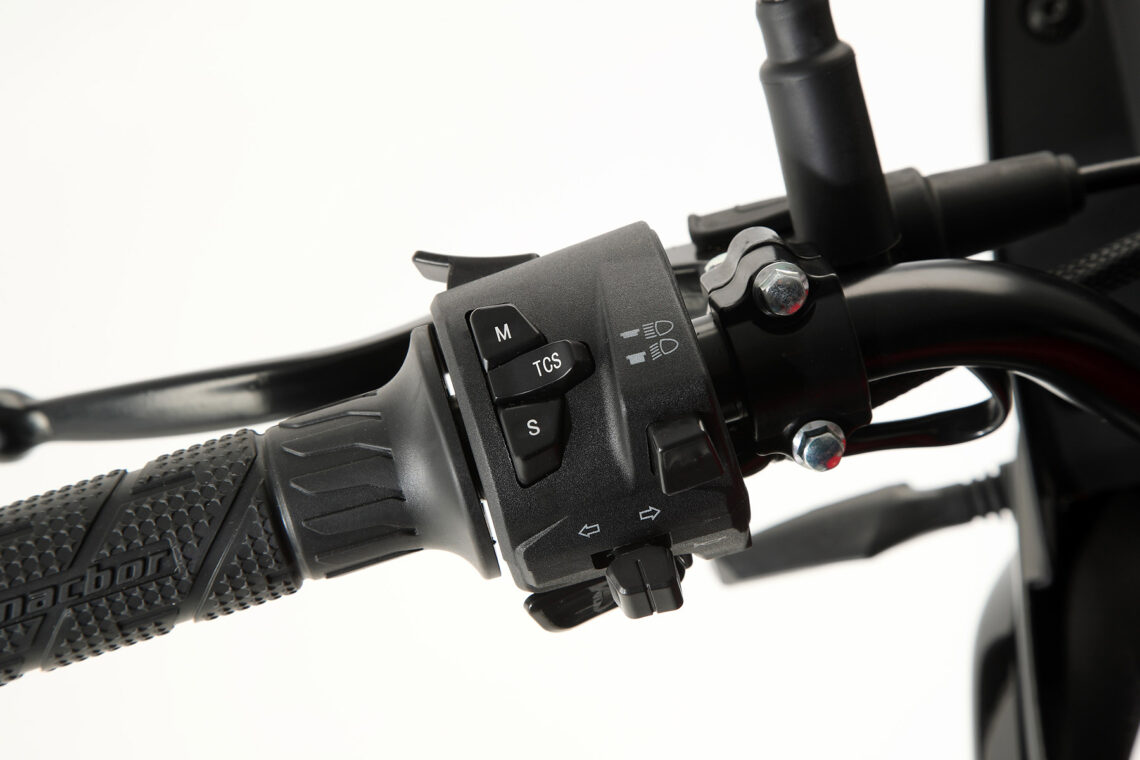 En su equipamiento encontramos también una serie de novedades de esta moto 125. En la frenada seguimos teniendo un disco delantero de 265 mm con pinza flotante de doble pistón y uno trasero de 240 mm con pinza flotante de un pistón, pero ahora se aumenta la seguridad gracias a la asistencia de ABS (antes sólo frenada combinada CBS). Además, este sistema dispone de tres modos: estándar, desconectado o desconectado de la rueda trasera, ideal para adaptarse a diferentes situaciones, sobre todo en conducción off-road.